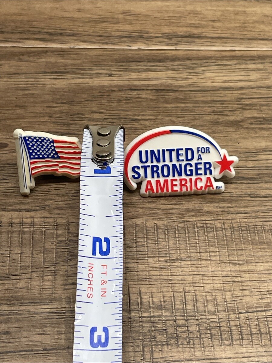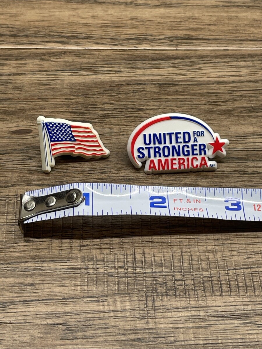 Lot of 2 USA Flag United for Stronger America Plastic Lapel Pin KG JD