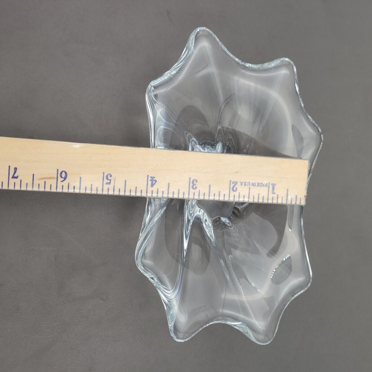 This vintage Baccarat Cadix ashtray is a stunning piece of French art glass. It features a clear color and intricate design that is sure to complement any home decor. The ashtray measures 6 1/2" in length and 4 1/2" in width, making it the perfect size for any room.