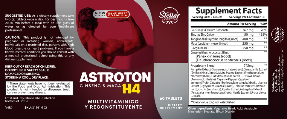 3 Pack Astroton Ginseng Maca H4, multivitamina y reconstruye-60 Tabletas x3