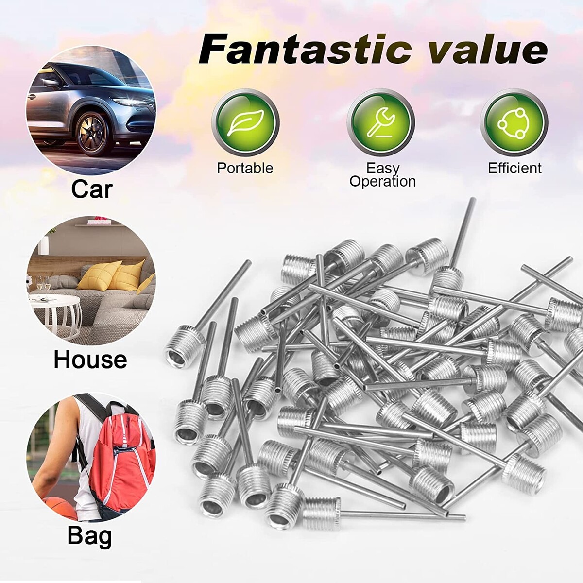 Universal American Standard Size - Easy to attach to the pump, our standard ball inflation needles can be broadly used for a variety of inflatable needs, works with Screw-in or Clamp-on Nozzles
