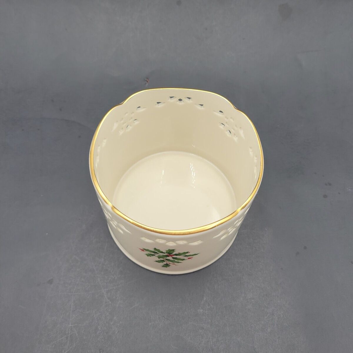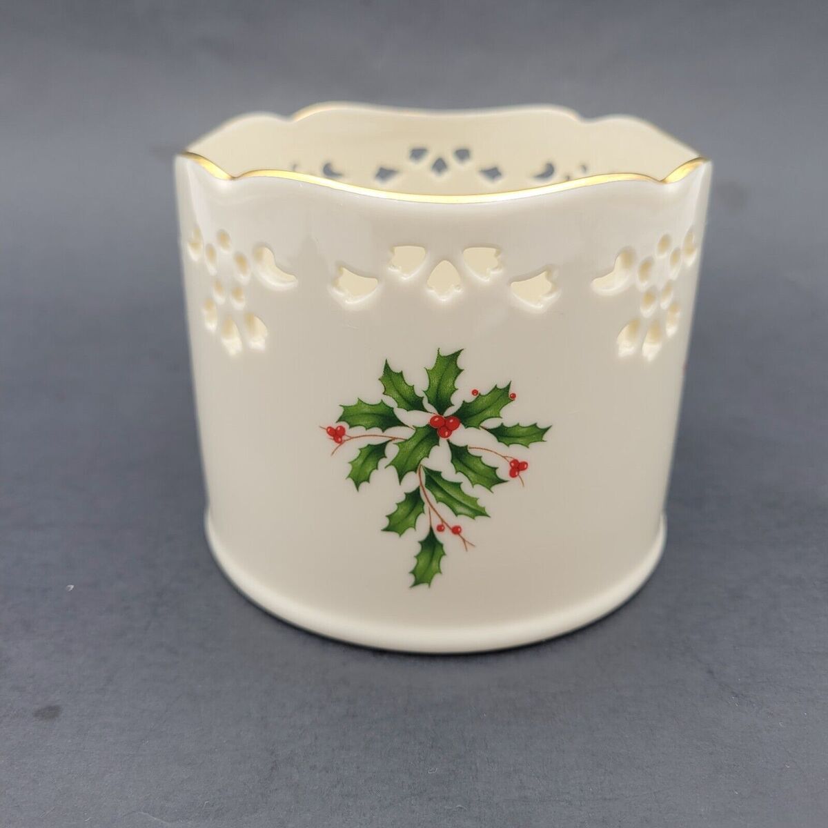 This is an immensely beautiful candle holder or Wine Bottle Coaster by Lenox. Has gold trim and beautiful design with holly berries on the outside and is pierced. It has a sense of festivity, elegance and royalty to it. You will definitely fall in Love with this!!