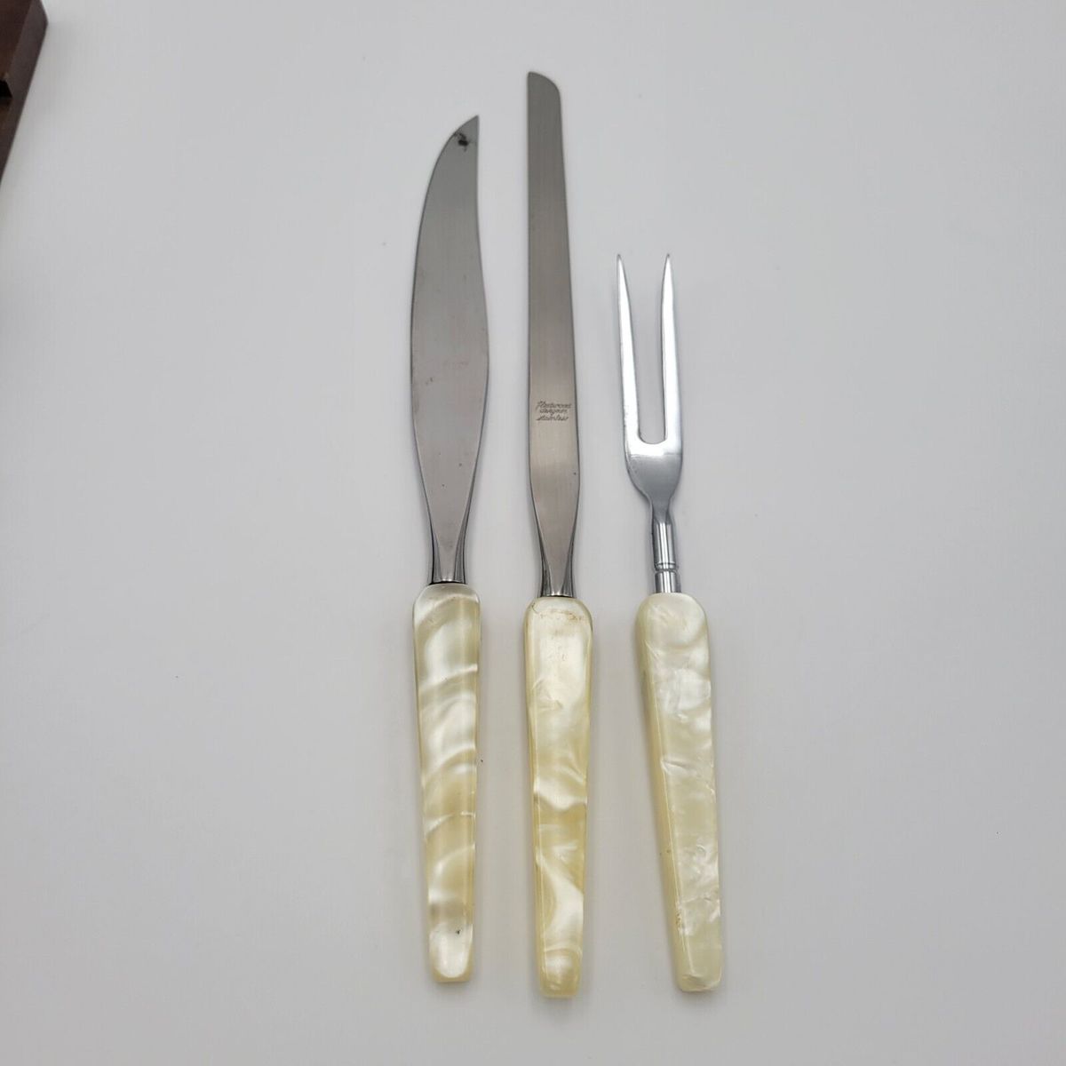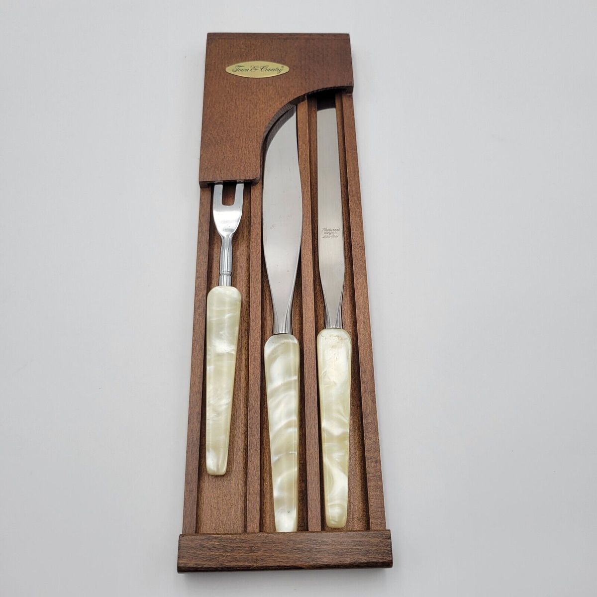 1960's TOWN COUNTRY Carving Set Mother of Pearl Fleetwood Set of 3 vintage