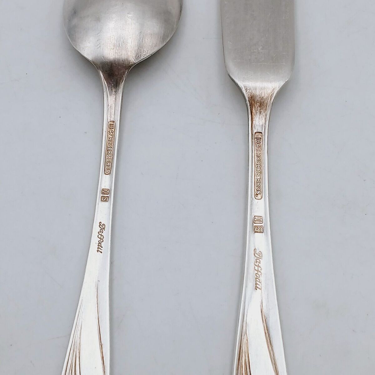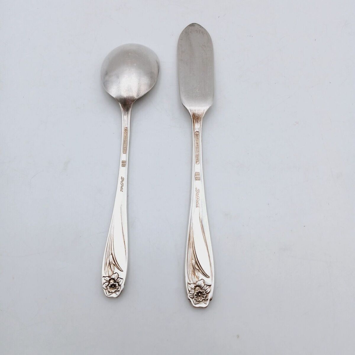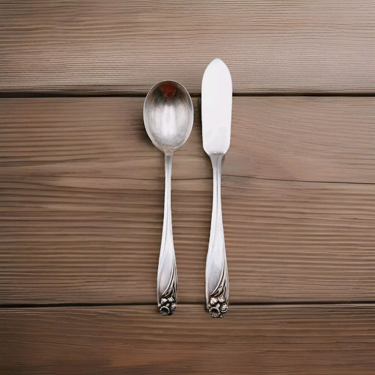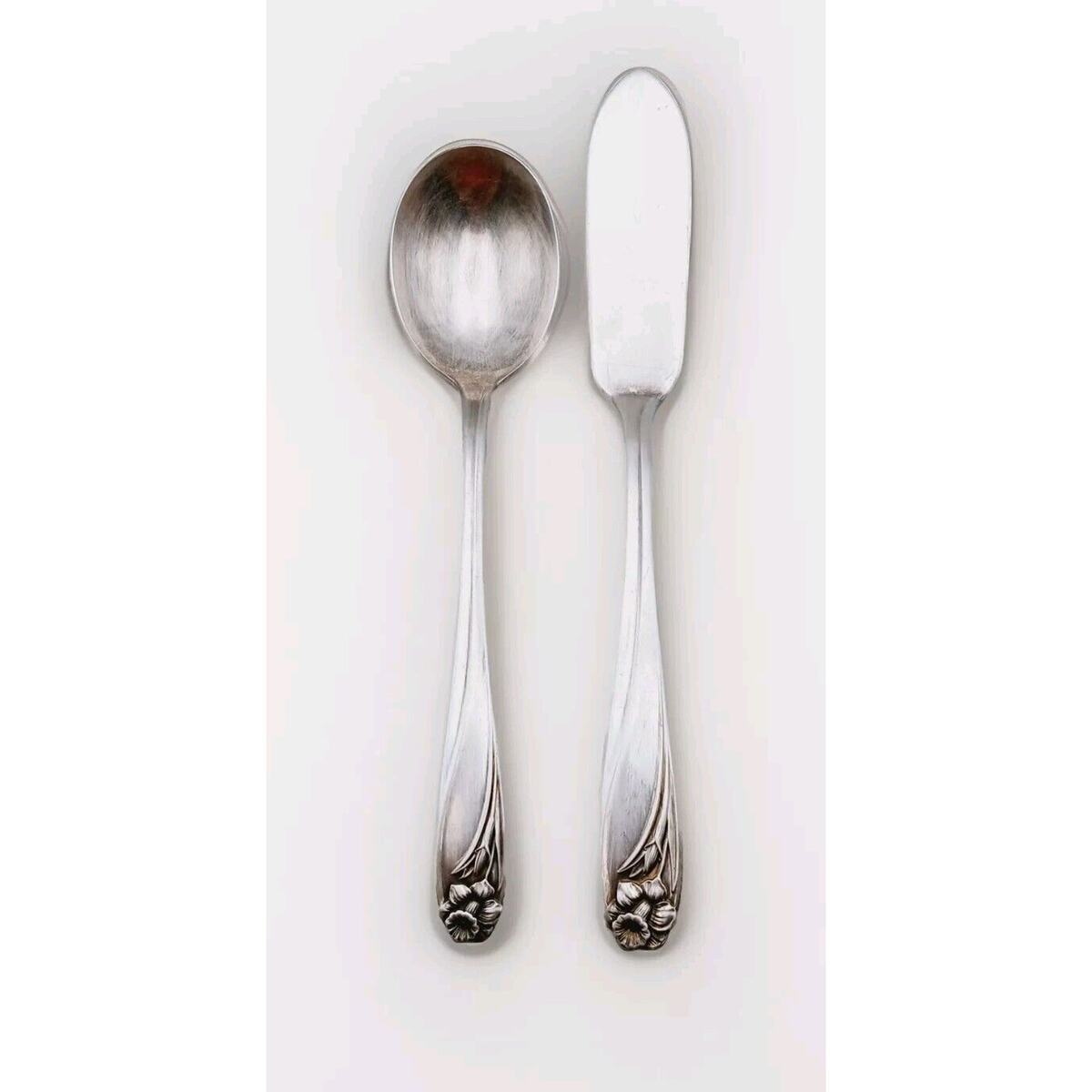 IS Daffodil Set of 2 Butter Knife & Sugar Spoon 1847 Rogers Silverplate Flatware