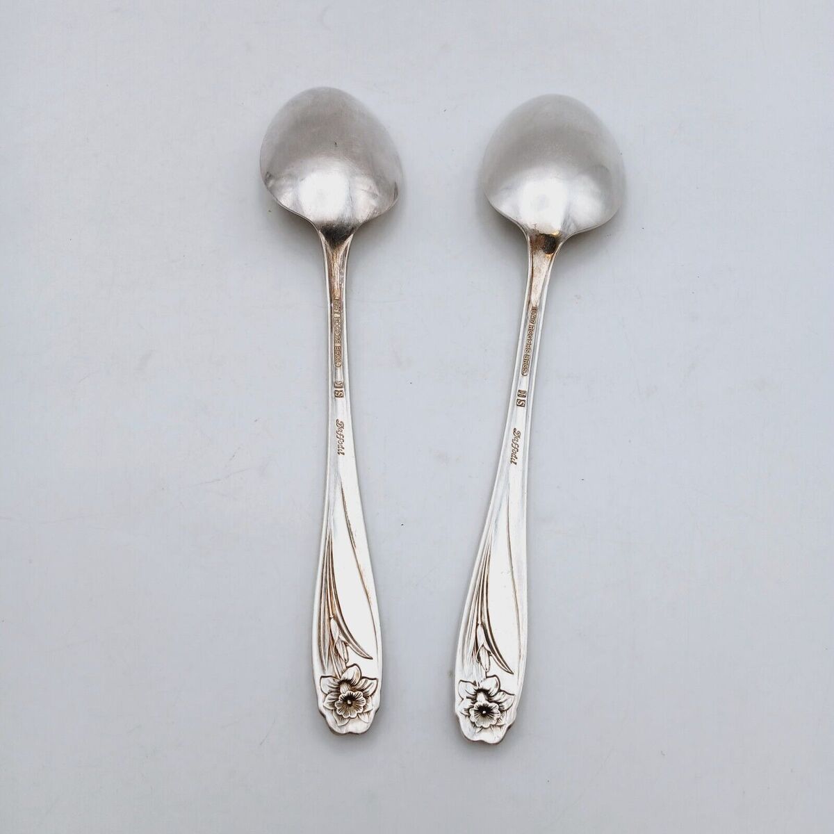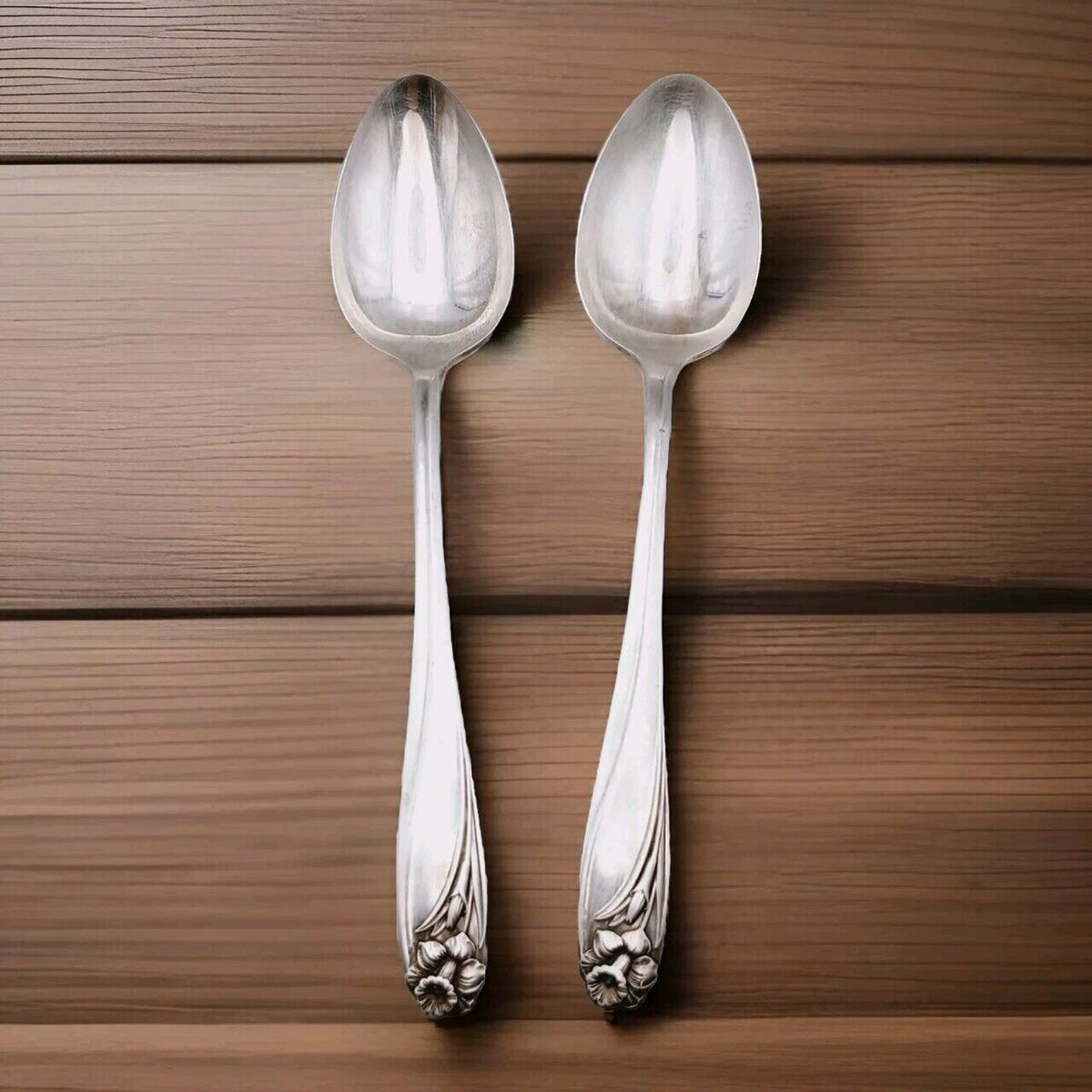 IS Daffodil Set of 2 Serving Spoon 1847 Rogers Silverplate Vtg Flatware