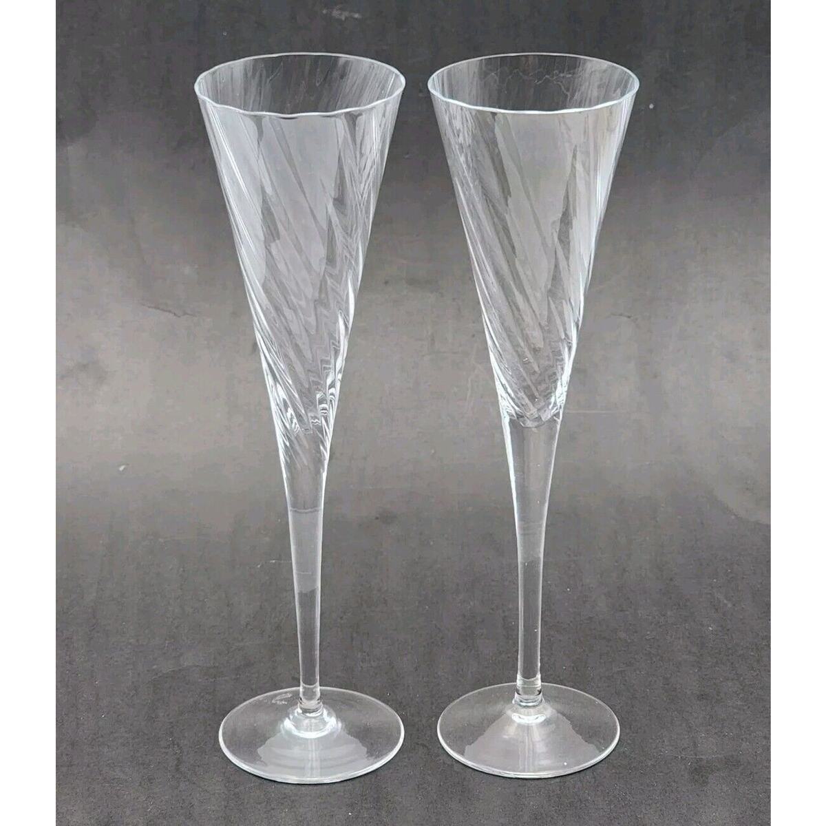 Sasaki Reflections Crystal Clear Wine or Champagne Flute 2 Pc Set FAST SHIPPING
