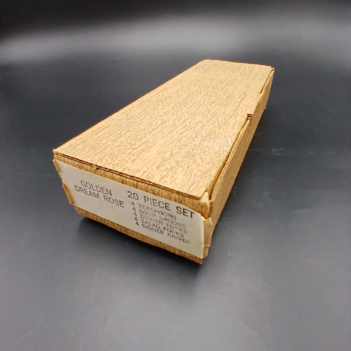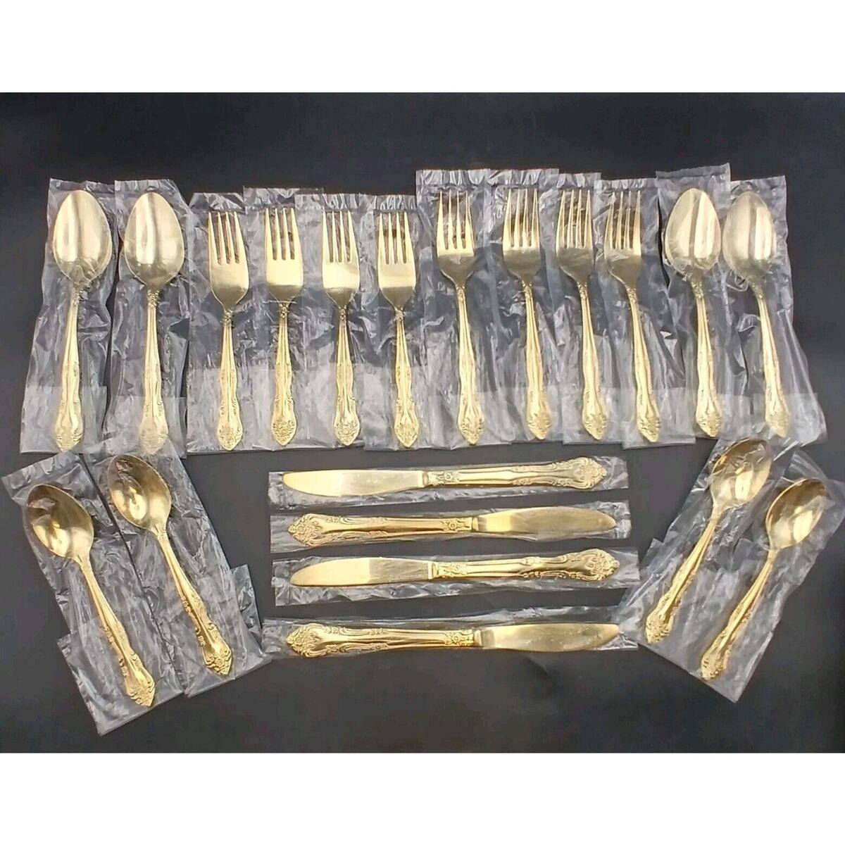 Vtg ROGERS Golden Dream Rose 20 pcs GOLD Electroplate Flatware Set 4 Places NEW
