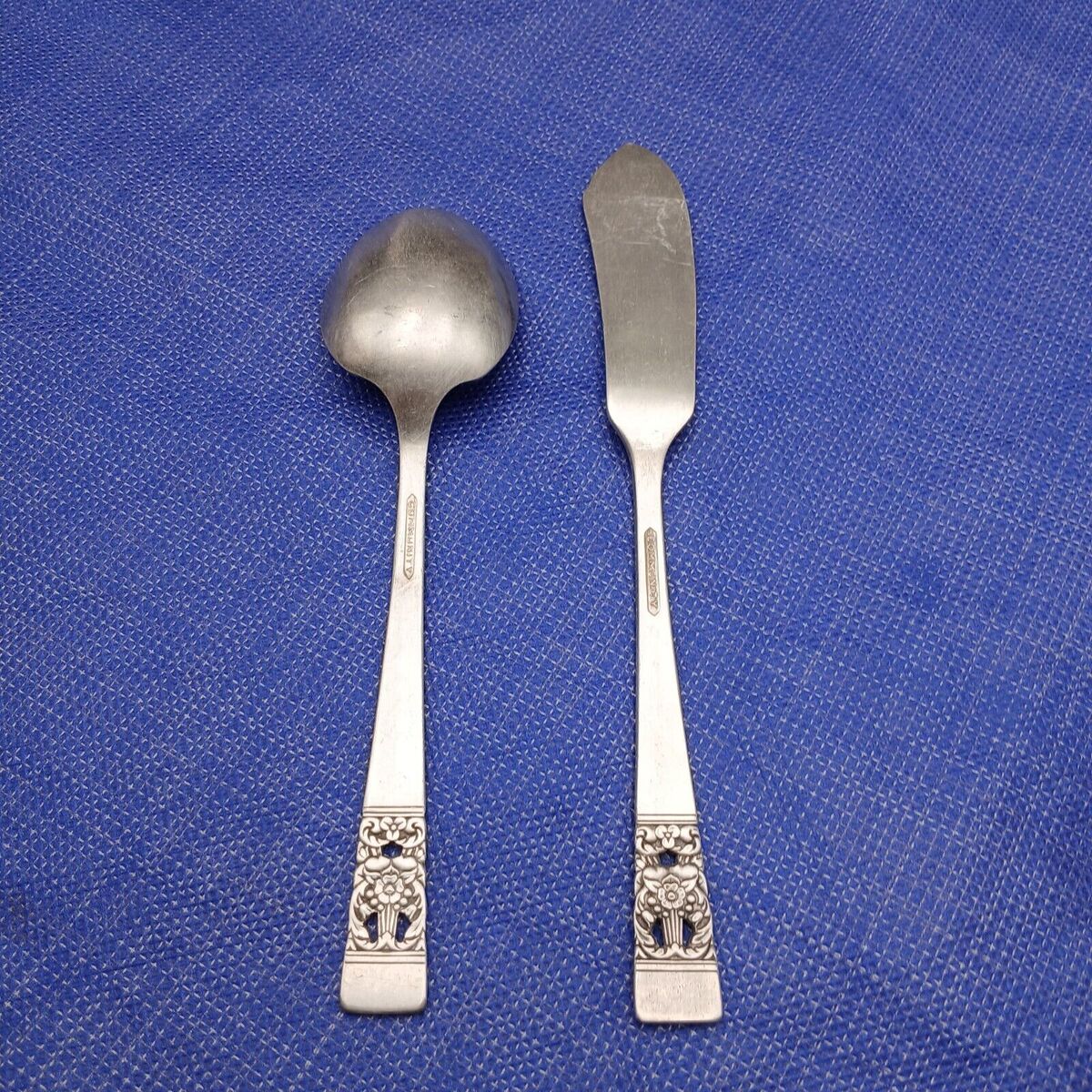 Oneida Community Coronation 1936 Set Sugar Spoon & Butter Knife Silverplate