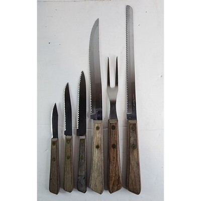 Forgecraft Stainless Steel 6 Piece Knife Set Made In USA 5 Knives 1 Fork VINTAGE. Wooden case may be hung on wall. Same day shipping.