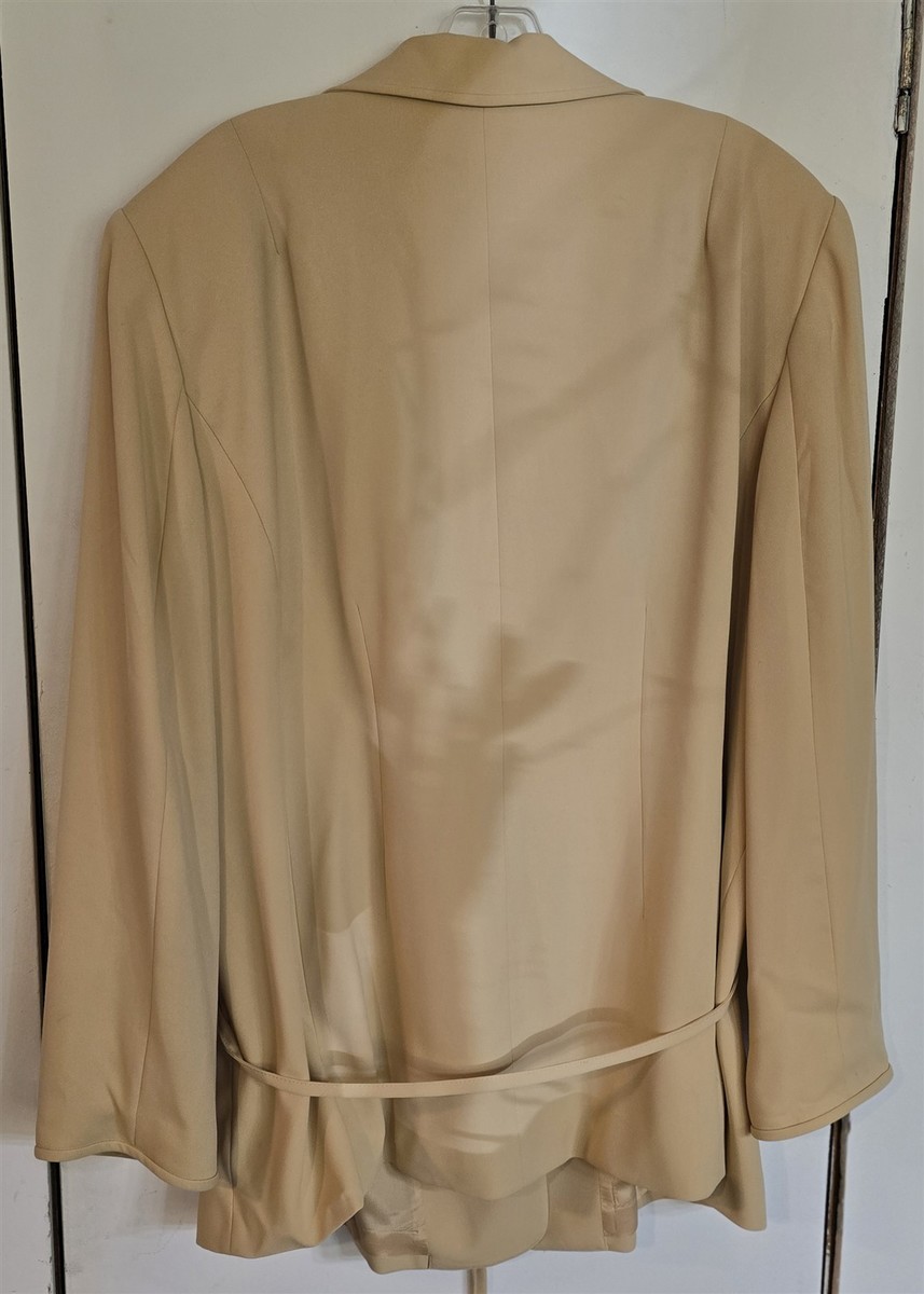 This sale is for a womens two piece skirt suit set, tan, good to excellent used condition, no rips, no tears, no stains, 95% polyester, 5% elastoester, jacket measures approximately 23" straight across armpit to armpit (bust), skirt measures approximately 18" straight across waist by 38 1/2" long, from a smoke free home.