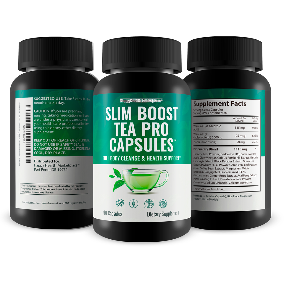 Comprehensive Full Body Cleanse - Slim Boost Tea Pro Capsules is a full body detox cleanse for women and men, designed to support overall health with a gentle yet effective formula made from vitamins, minerals, herbs, and antioxidants.
