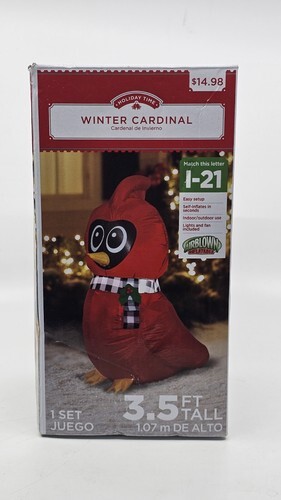 Holiday Time 2021 Christmas Festive Cardinal Red Bird Airblown Inflatable 3.5'