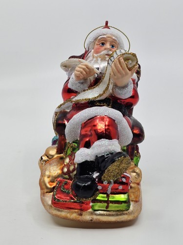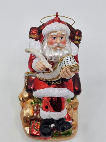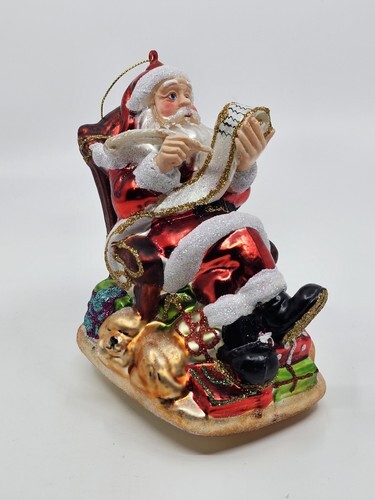 Vintage Radko Style Glass Santa Naughty Nice List Ornament Presents Puppies