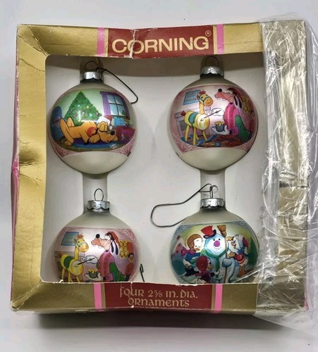 Christmas Corning Ornaments Ball Glass Tree Disney Goofy Pluto Duck Tales Huey