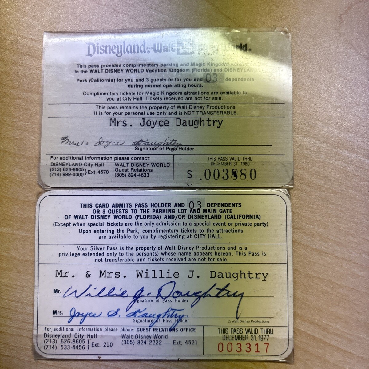 Vintage 1977 And 1980 Disney World Cast Member Silver Pass Card - Passholder