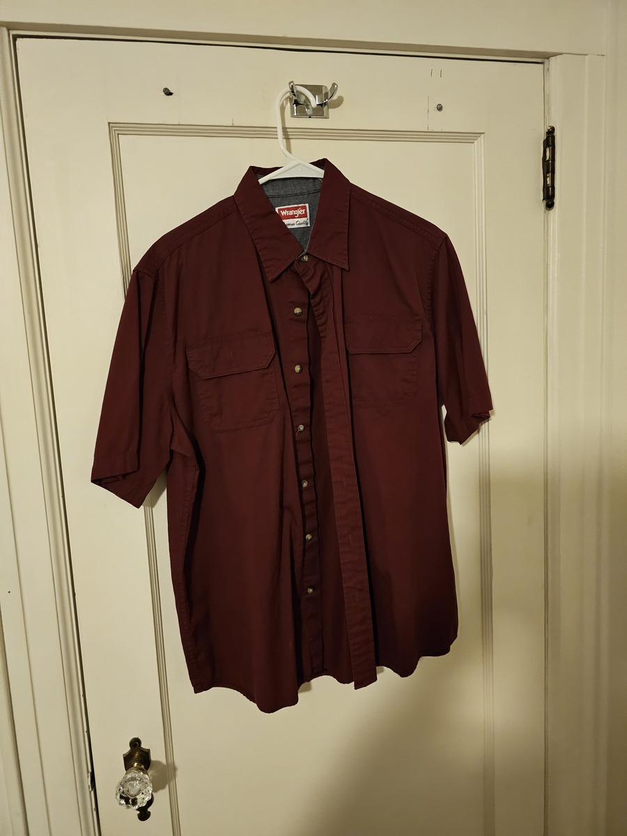 Wraingler preminum Quality solid red mens medium button down short sleeve