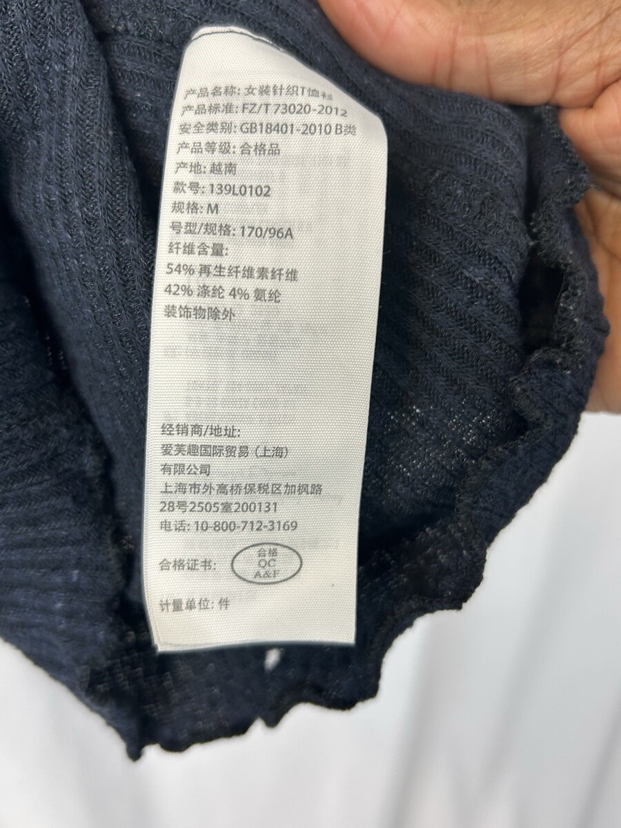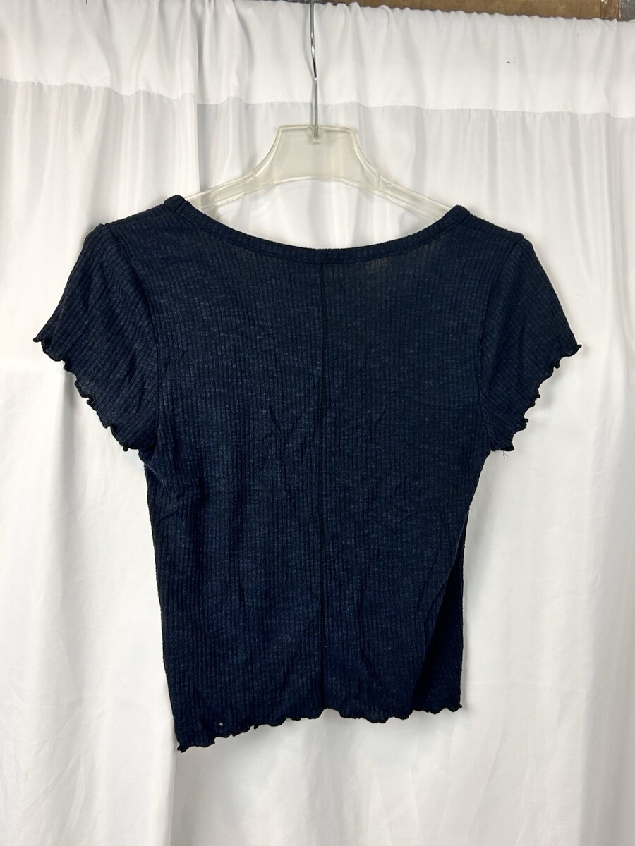 Abercrombie Fitch Ribbed Lettuce Hem Short Sleeve Top Navy Blue Size M