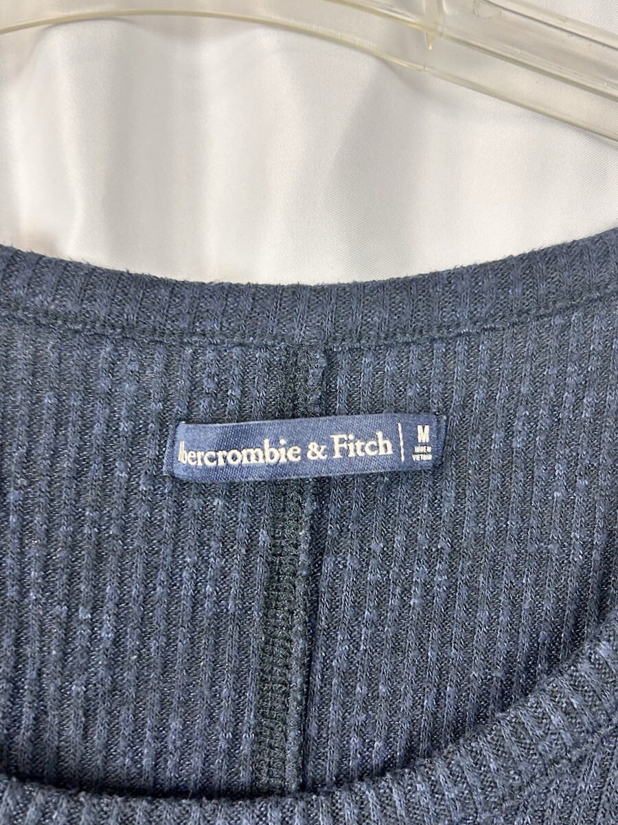 Abercrombie & Fitch Ribbed Lettuce Hem Short Sleeve Top Navy Blue Size M