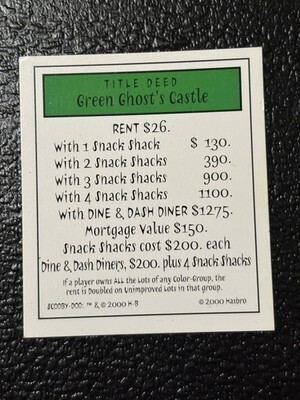 Monopoly Scooby-Doo Collectors Ed. Part: Title Deed - Green Ghost’s Castle