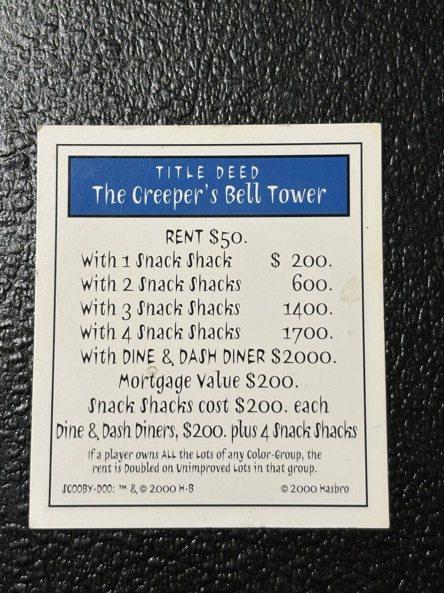 Monopoly Scooby-Doo Collectors Ed. Part: Title Deed - The Creeper’s Bell Tower