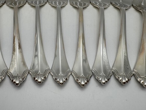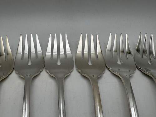 These salad forks measure 7 1/8" in length and are in very good estate condition with no excessive wear.