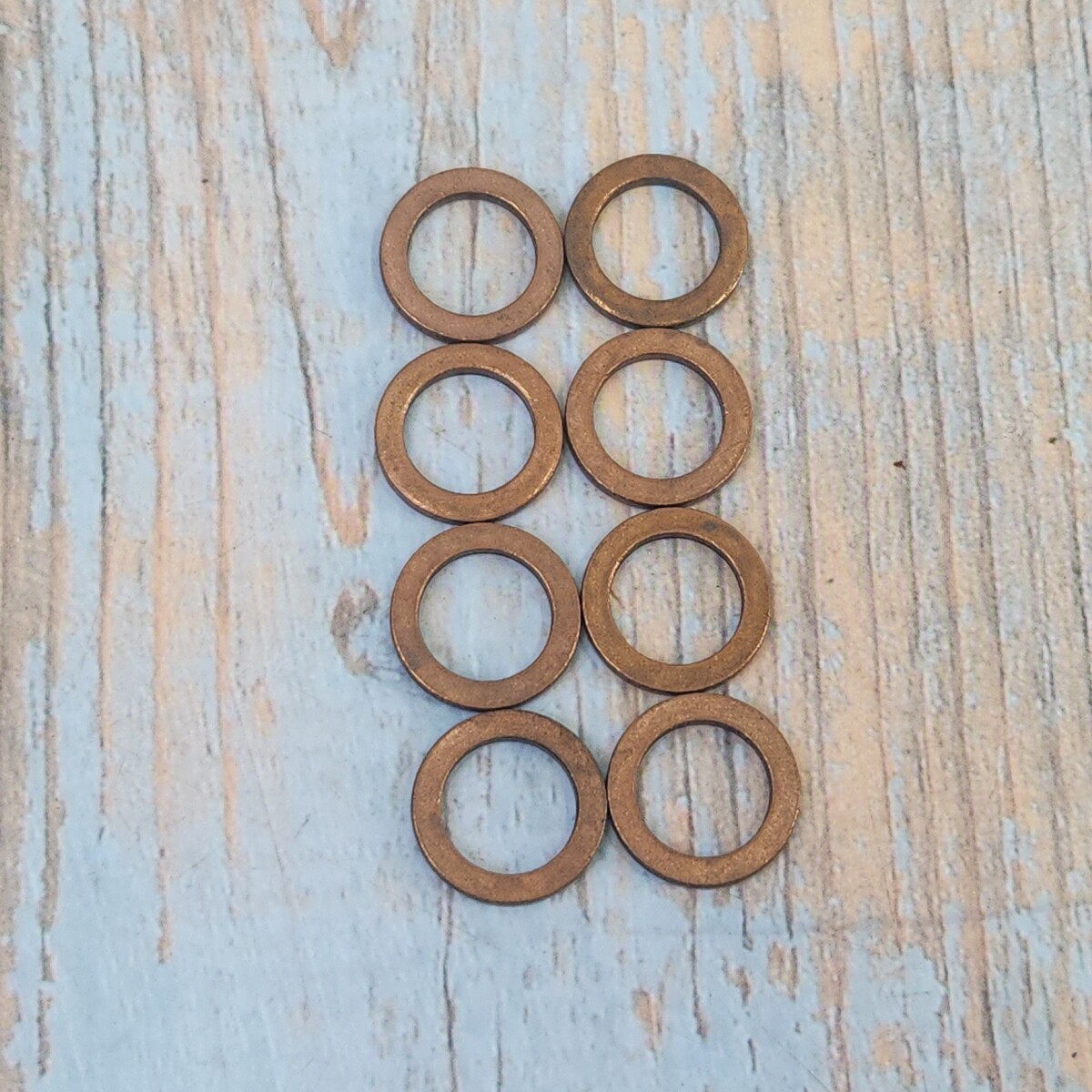This product is a set of 8 GM 90193258 hydraulic brake hose washers specifically designed for the 2007-2011 Chevrolet HHR. Made of copper with an outer diameter of 9/16 inches and an inner diameter of 3/8 inches, these washers are rust-resistant and petroleum resistant. Manufactured by GM in Germany, the washers come with a California Prop 65 Warning for cancer and reproductive harm. They are a genuine OEM part, featuring a vintage design and a universal fitment. Perfect for placement on the rear, left, or front of the vehicle, these washers provide high-quality performance and durability for your braking system.