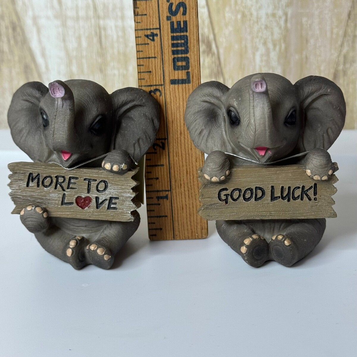 DWK 2016 Set of 2 Elephants "Good Luck" "More to Love" Home Decor Figurines