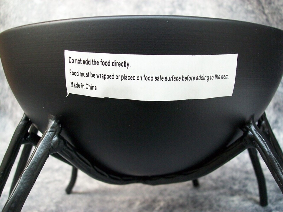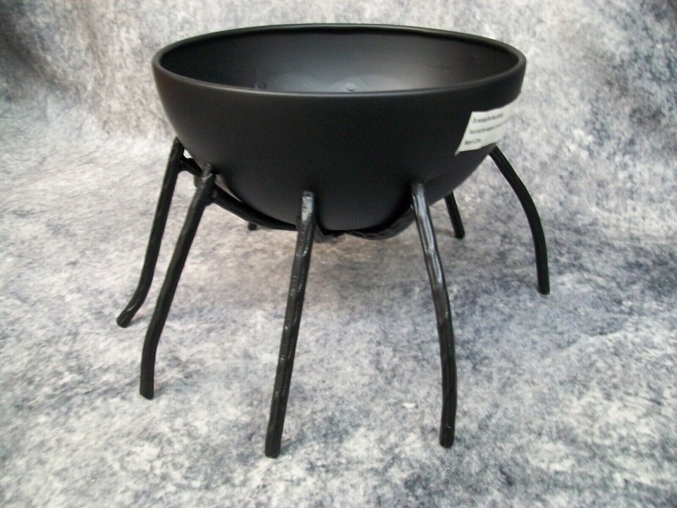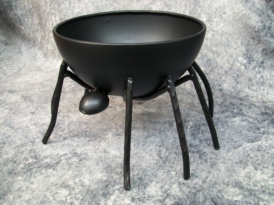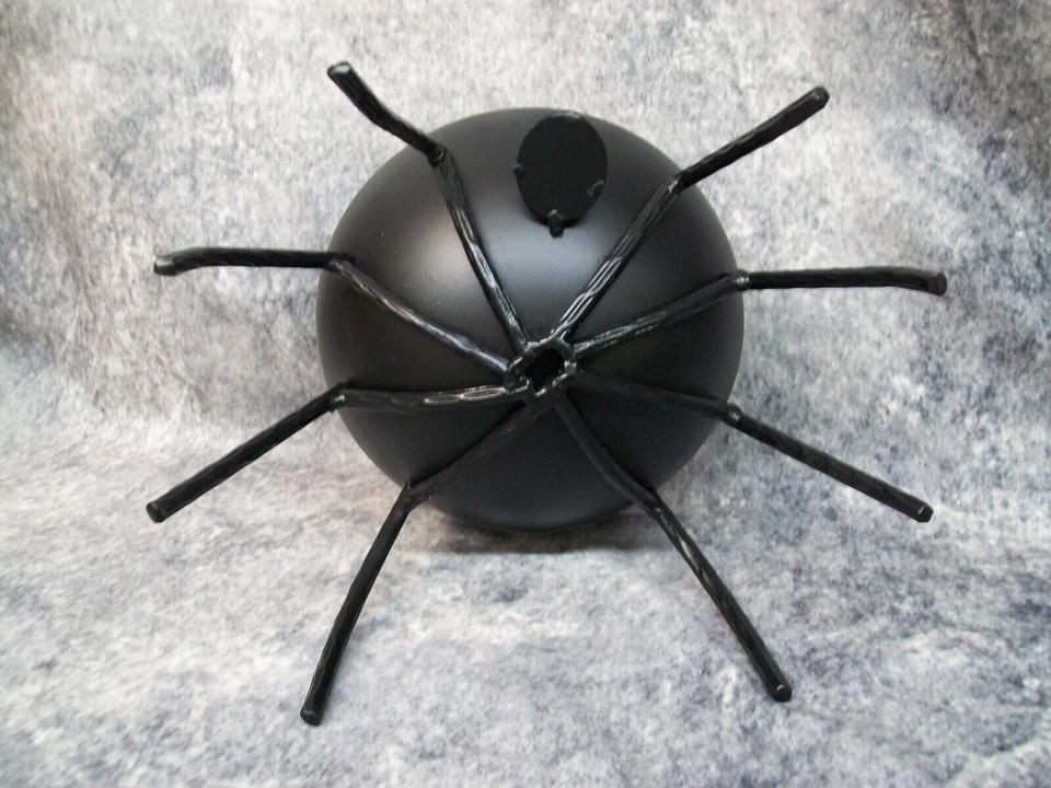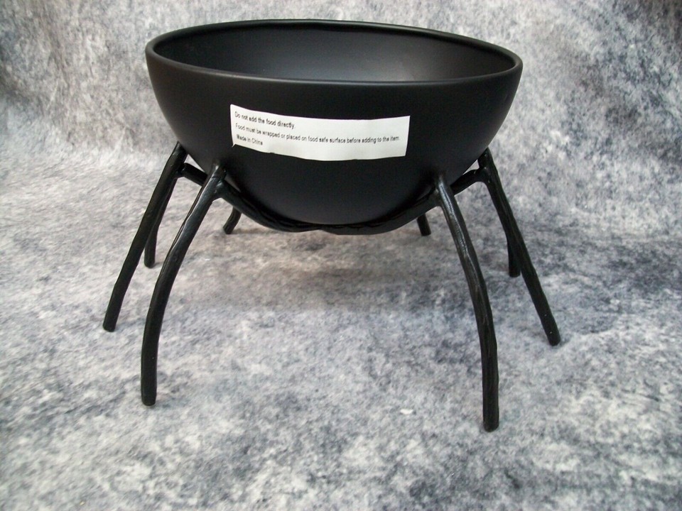 Cute Fun Matte Black Spider Themed Decorative Candy Bowl. Great for Halloween Trick or Treat. Or could be used for other things. Made of Metal. Should be used indoors. The bowl wobbled on my table so I think some legs may not be the exact same length. Place over a doile or tablecloth to protect surface just in case so it don't scratch. Welded metal could have some sharp edges in places. Use care when handling. Due to the all metal construction, this is on the heavy side.