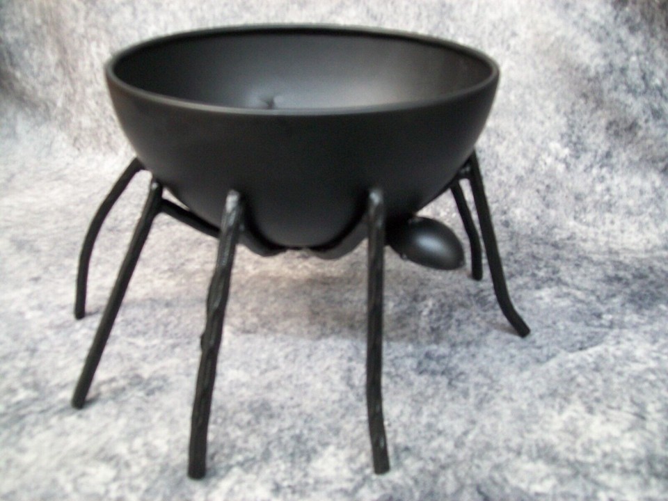 Black Metal Spider Themed Candy Bowl Holder Trick or Treat Halloween Decor NEW