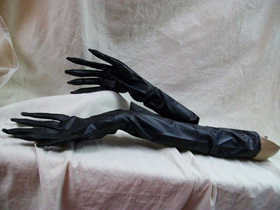 Long Pointed Finger Costume Gloves. Black. Stuffed fingertips. Adjust filling in tips as needed. Long Gloves. Approx. 17" from wrist seam to the end. Measurements taken laying flat. For ages 14 and up. Unisex: Could be worn by male or female. 100% Polyester.