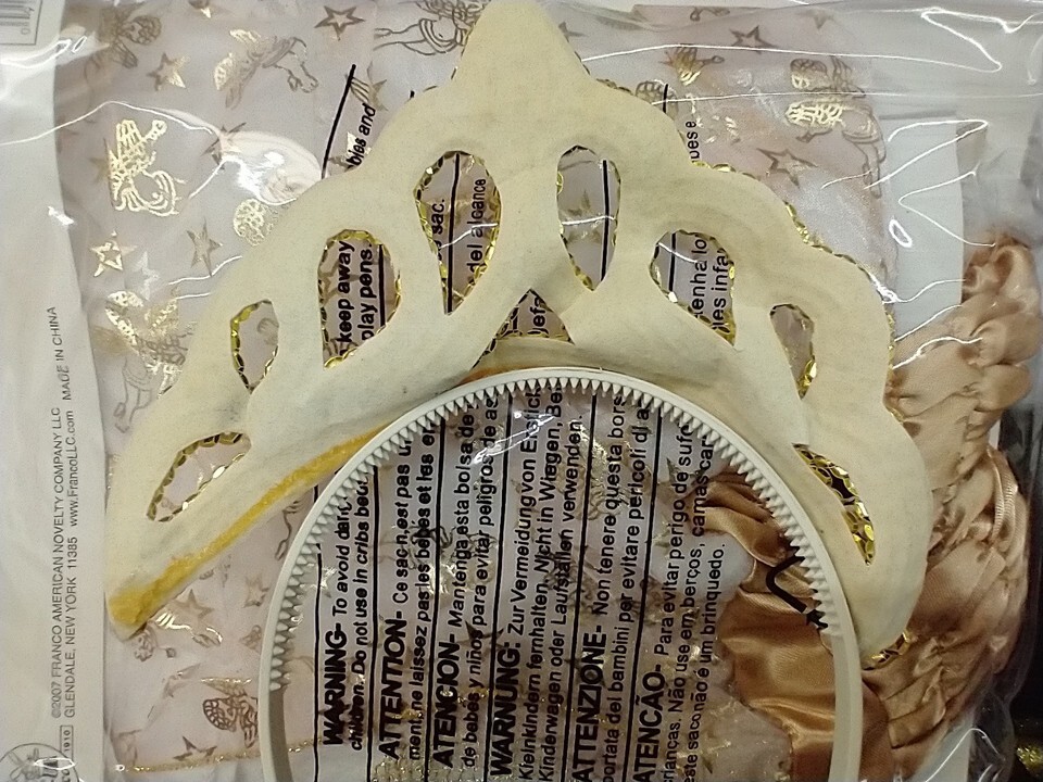 ADDITIONAL NOTES: NEW IN PACKAGE. Longer loose threads here and there. Selling as just the dress. The sequin accent has came loose from the headband. Could possibly be fixed. Lighter areas in the gold fabric on the wing frames. SOLD AS IS