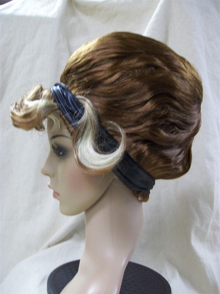 Brown Blonde Beehive UpDo Wig 50s 60s 70s Retro Mod Gal English Lady Secretary
