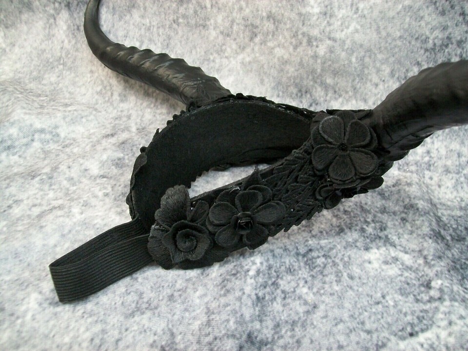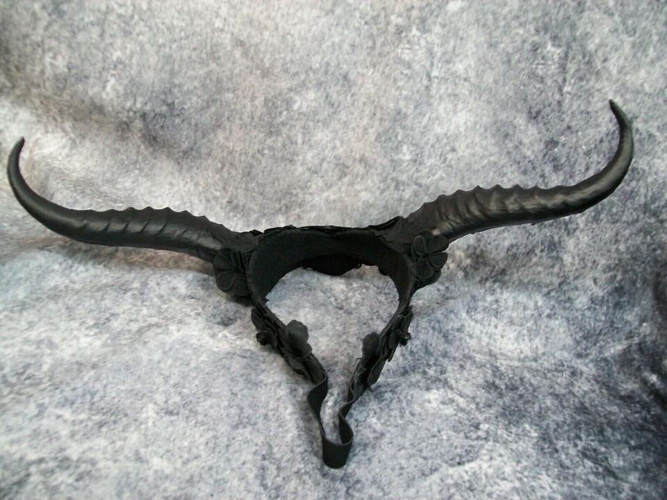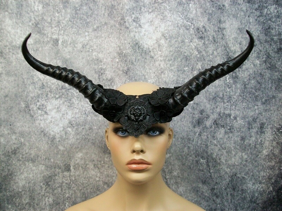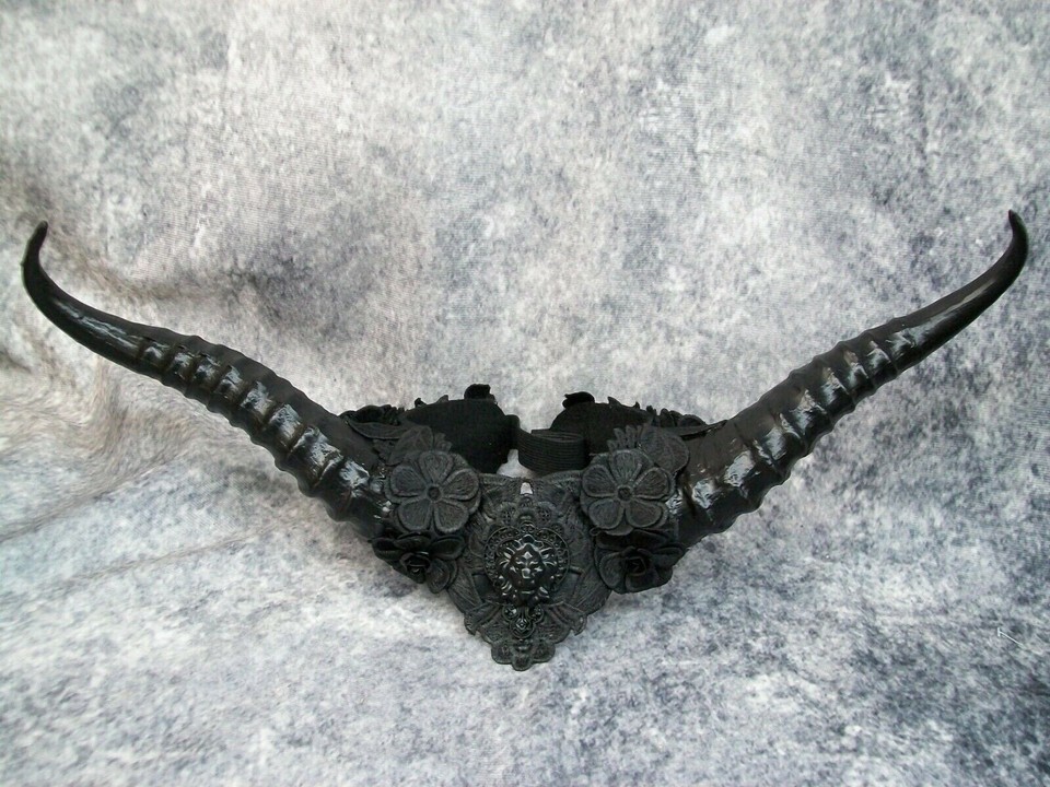 Black Horned Goddess Headpiece Goat Horns Ram Gothic Mythical Demon Creature Imp