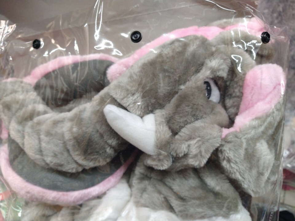 Cute Elephant Toddler Costume Hooded Jumpsuit. Really Soft Plush. Unisex: Could be used as a girl or boy costume. Really Cute for a Zoo themed party or Photos. NEW IN PACKAGE. Longer loose threads here and there. SOLD AS IS