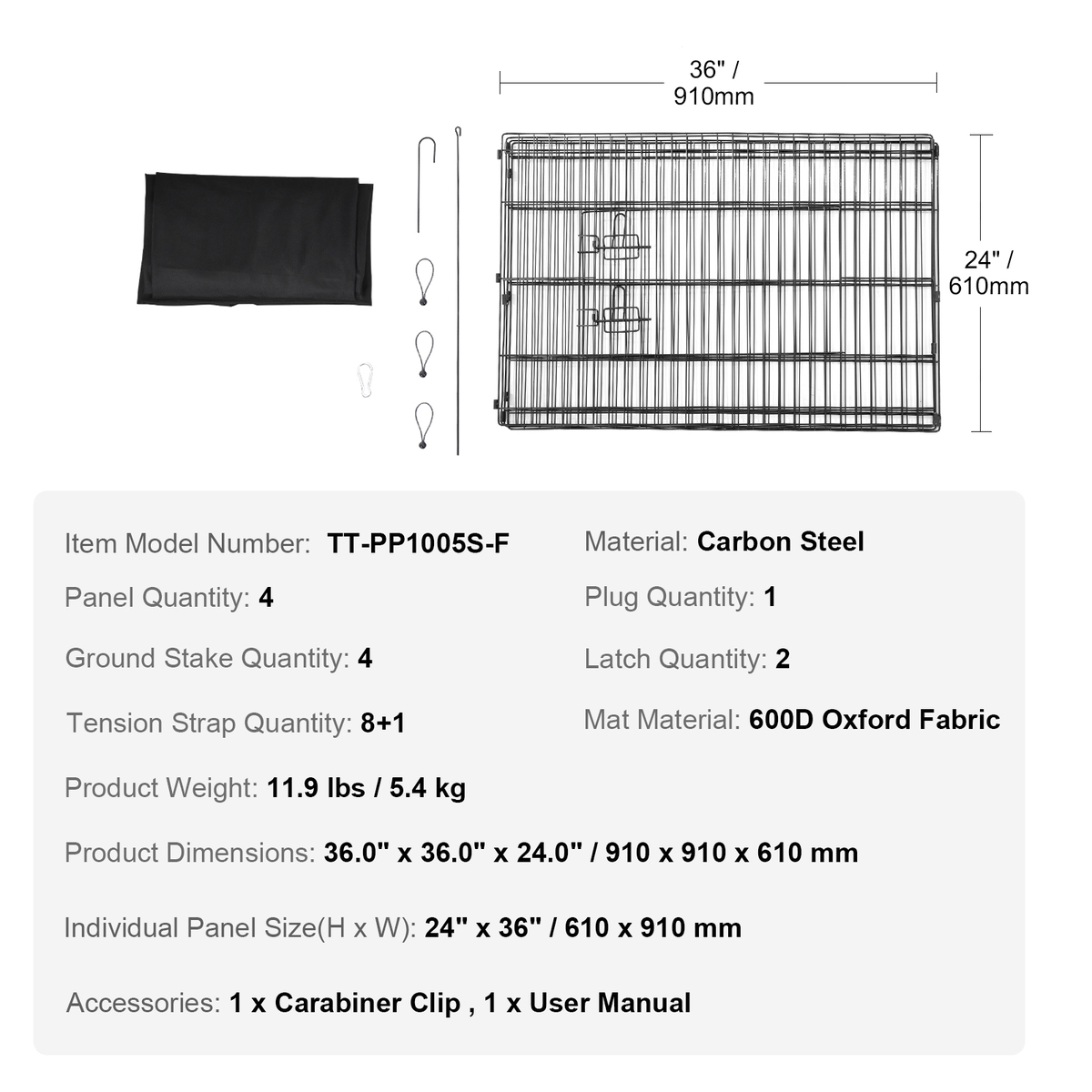 VEVOR Dog Playpen, 4 Pcs 24 x 36 in Panels Foldable Metal Pet Exercise Pen