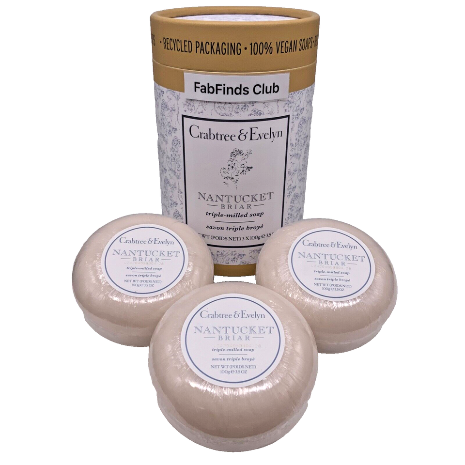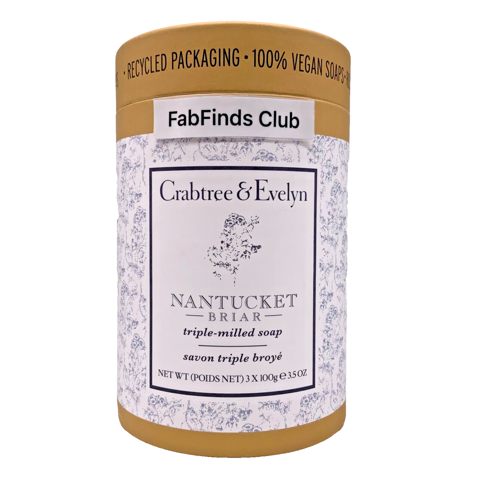Crabtree & Evelyn Nantucket Briar Bar Soap 3pc Set Triple Milled Gift Ready Box