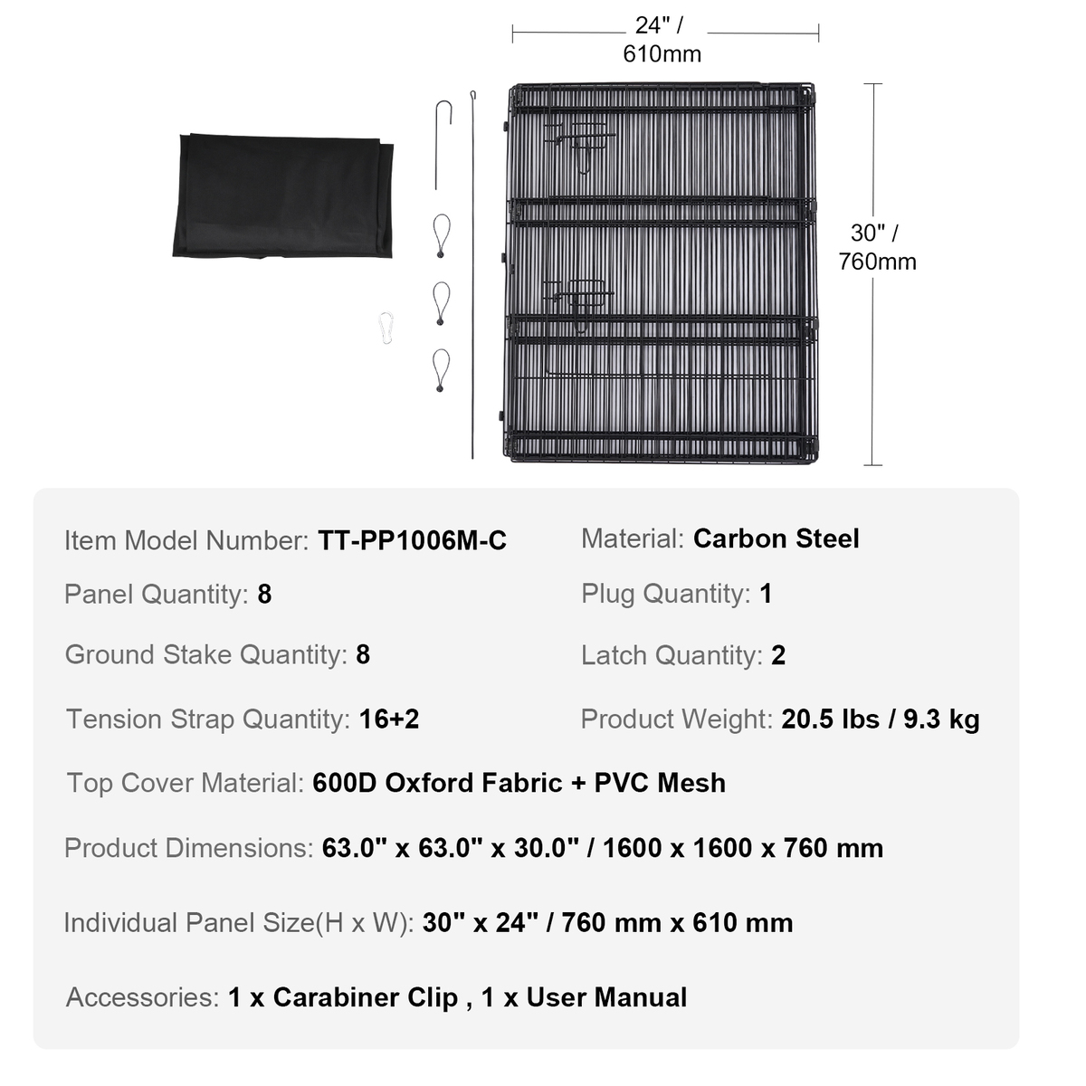 VEVOR Dog Playpen, 8 Pcs 30"H x 24"W Panels Foldable Metal Pet Exercise Pen