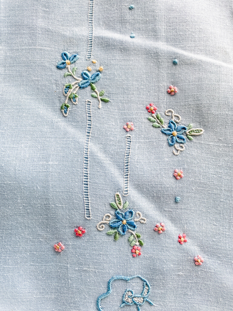 Vintage Madeira Linen Hand Embroidered FingerTip Towels Provenance Unused Pastel
