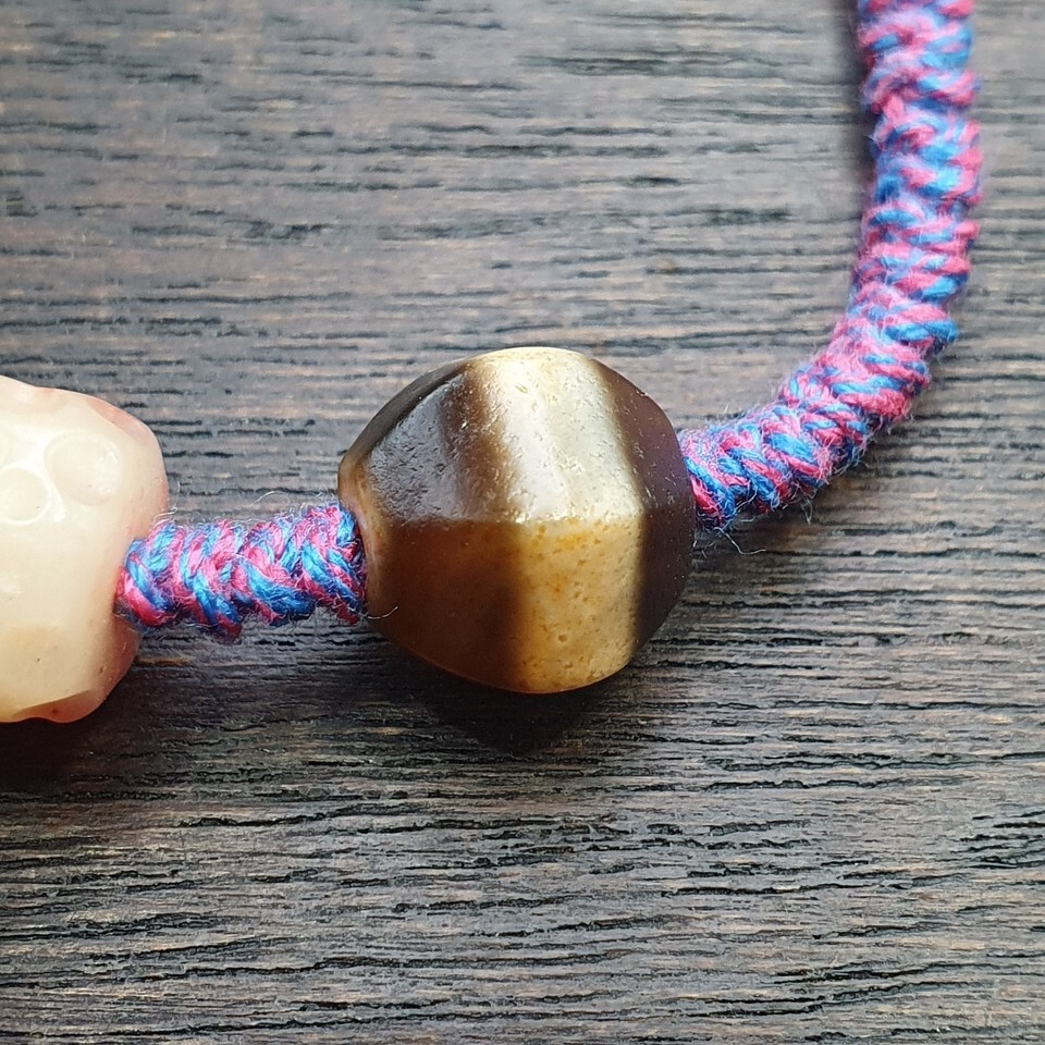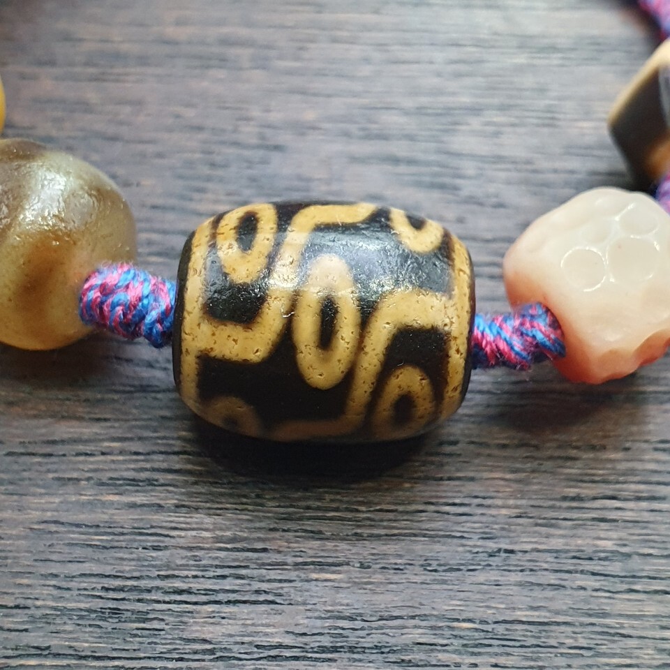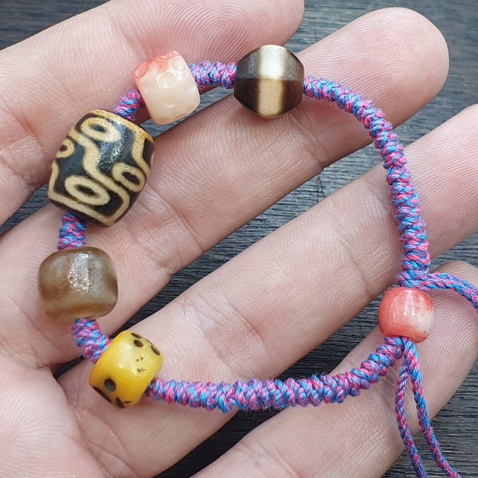 La pulsera de cuentas Dzi hecha a mano cuenta con cordon multicolor y cuentas espirituales, originarias del Tíbet. Hecho a mano con agata como material principal, este brazalete original vintage refleja una rica historia y significado cultural. Hecho con cuidado y atencion al detalle, esta pulsera es una pieza única y hermosa que encarna la artesanía tradicional tibetana.