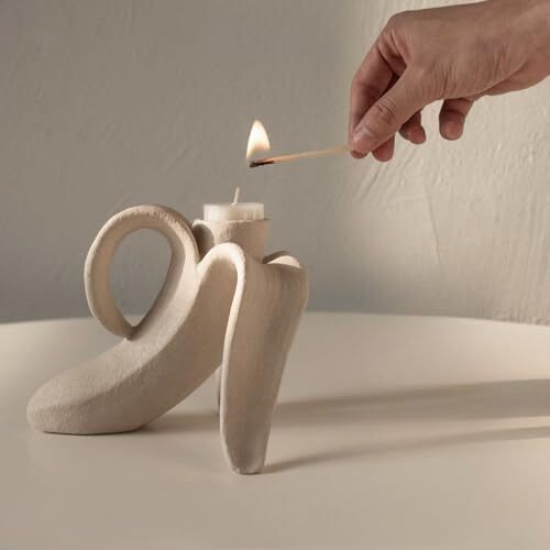 Product description: Transform your space with this handmade modern abstract candle holder?a perfect marriage of artistic expression and practical functionality. The fluid, looping ceramic design creates a captivating sculptural centerpiece that elevates any room's aesthetic. Measuring 6.7 x 6.7 x 5.1 inches, this minimalist piece features a sophisticated matte finish that adds textural interest while maintaining contemporary elegance. The versatile holder works beautifully in bedrooms, living areas, or creative workspaces, serving as both a striking decorative object and a practical holder for candles or tealights. Its stable design allows for safe placement on tables, nightstands, mantels, or shelves, instantly transforming ordinary surfaces into artistic displays. Each piece showcases expert craftsmanship with premium ceramic construction ensuring both visual appeal and lasting durability. This artistic accent makes a thoughtful, design-forward gift for anyone who appreciates modern interior aesthetics.
