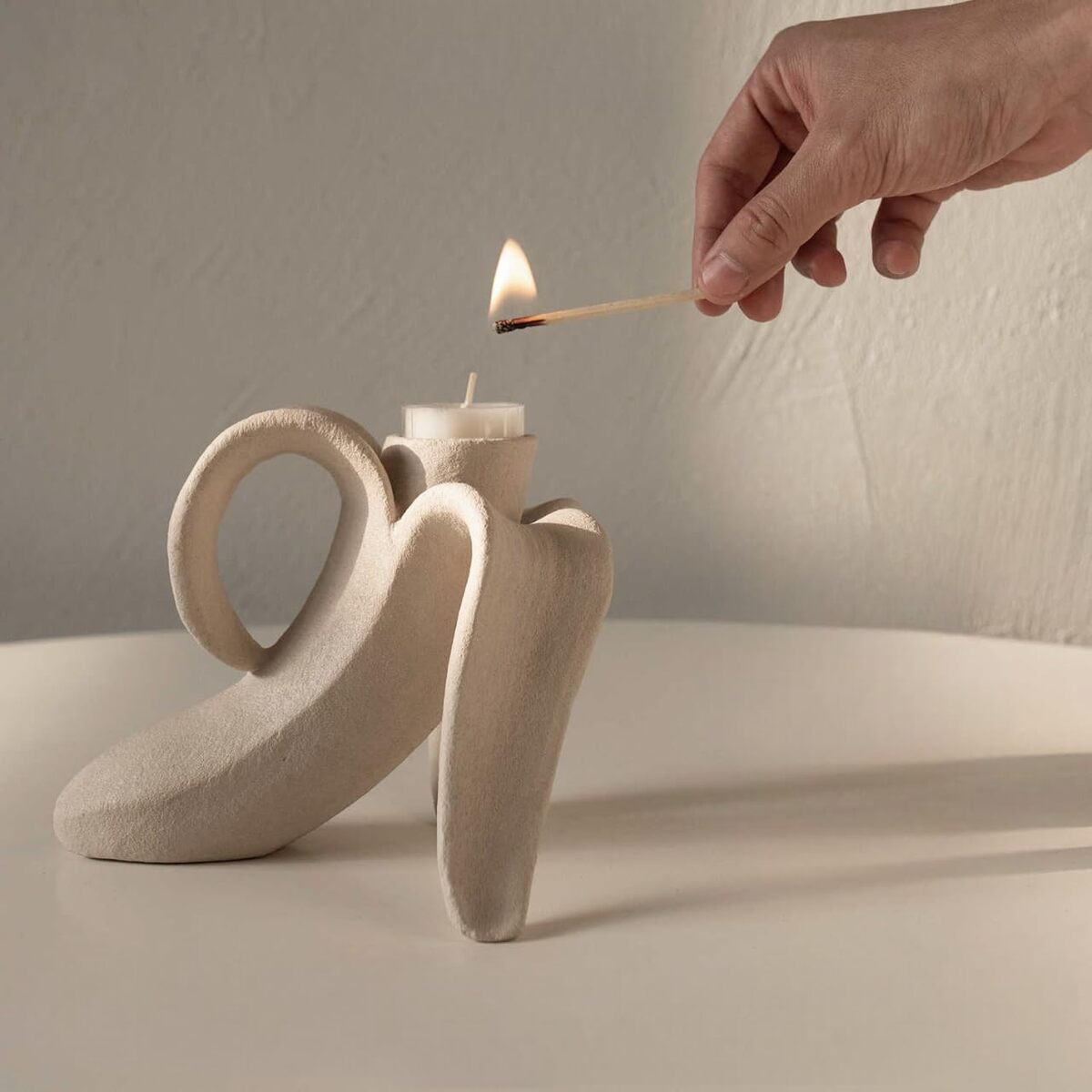 Handmade Modern Abstract Candle Holder, Artistic Sculptural Table Centerpiece, M
