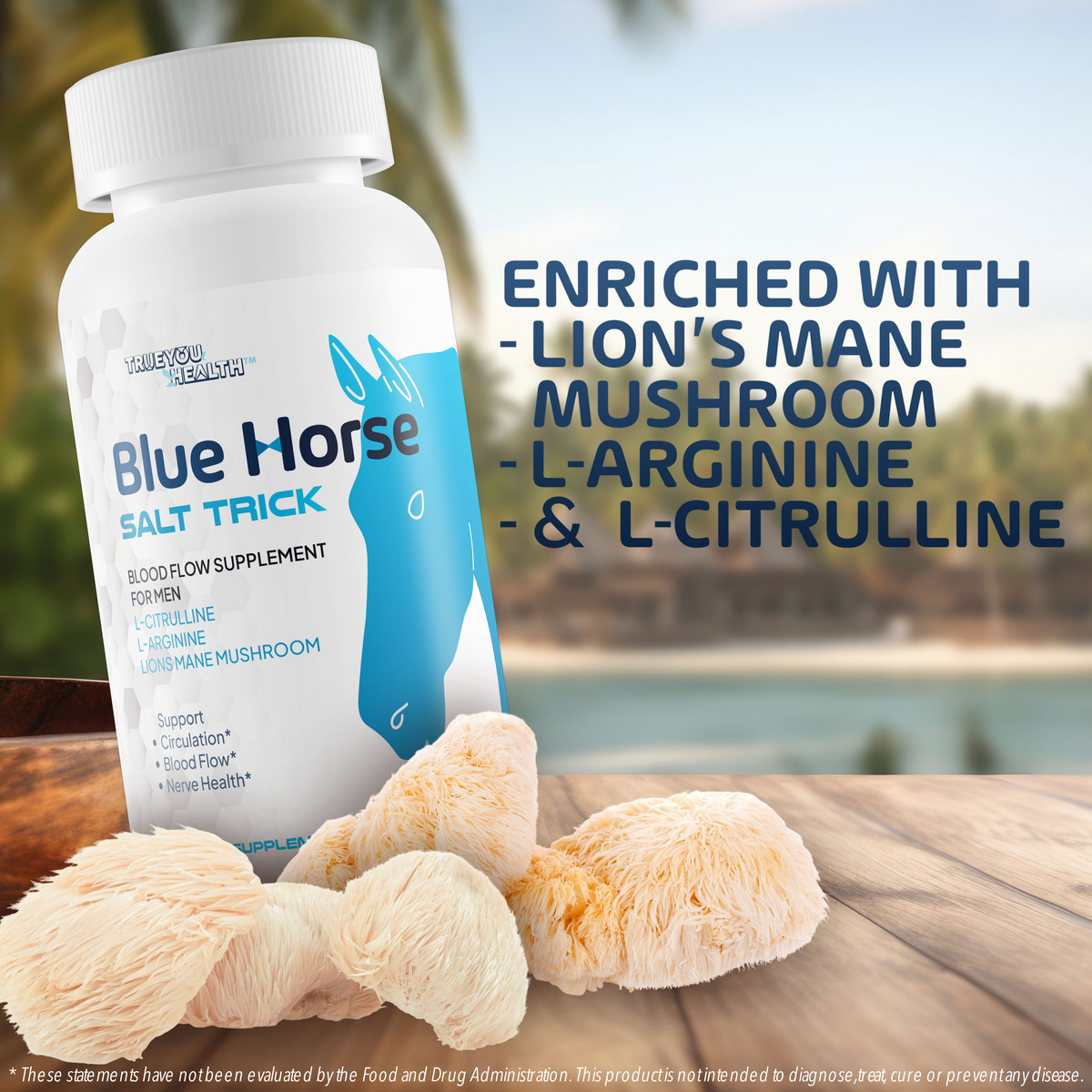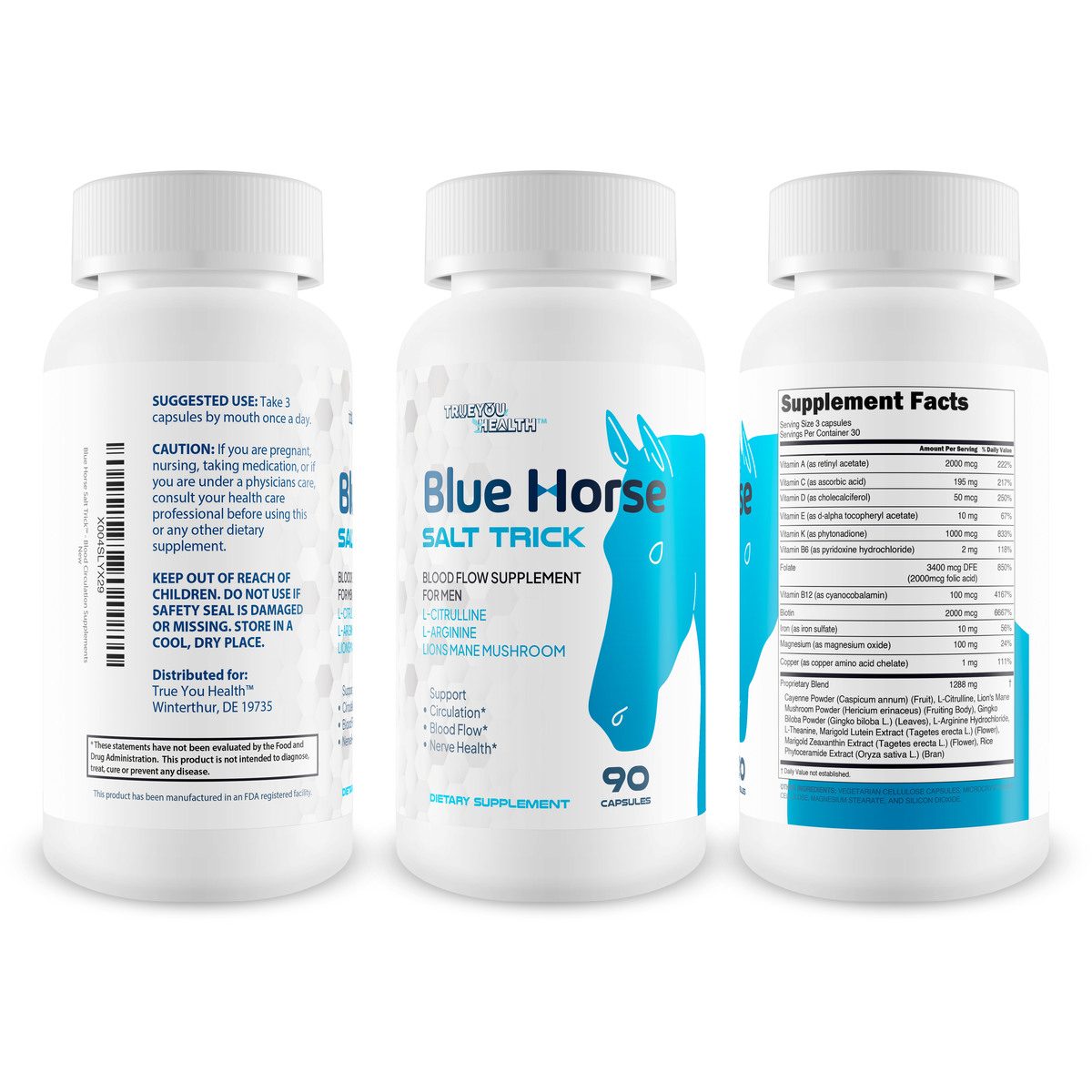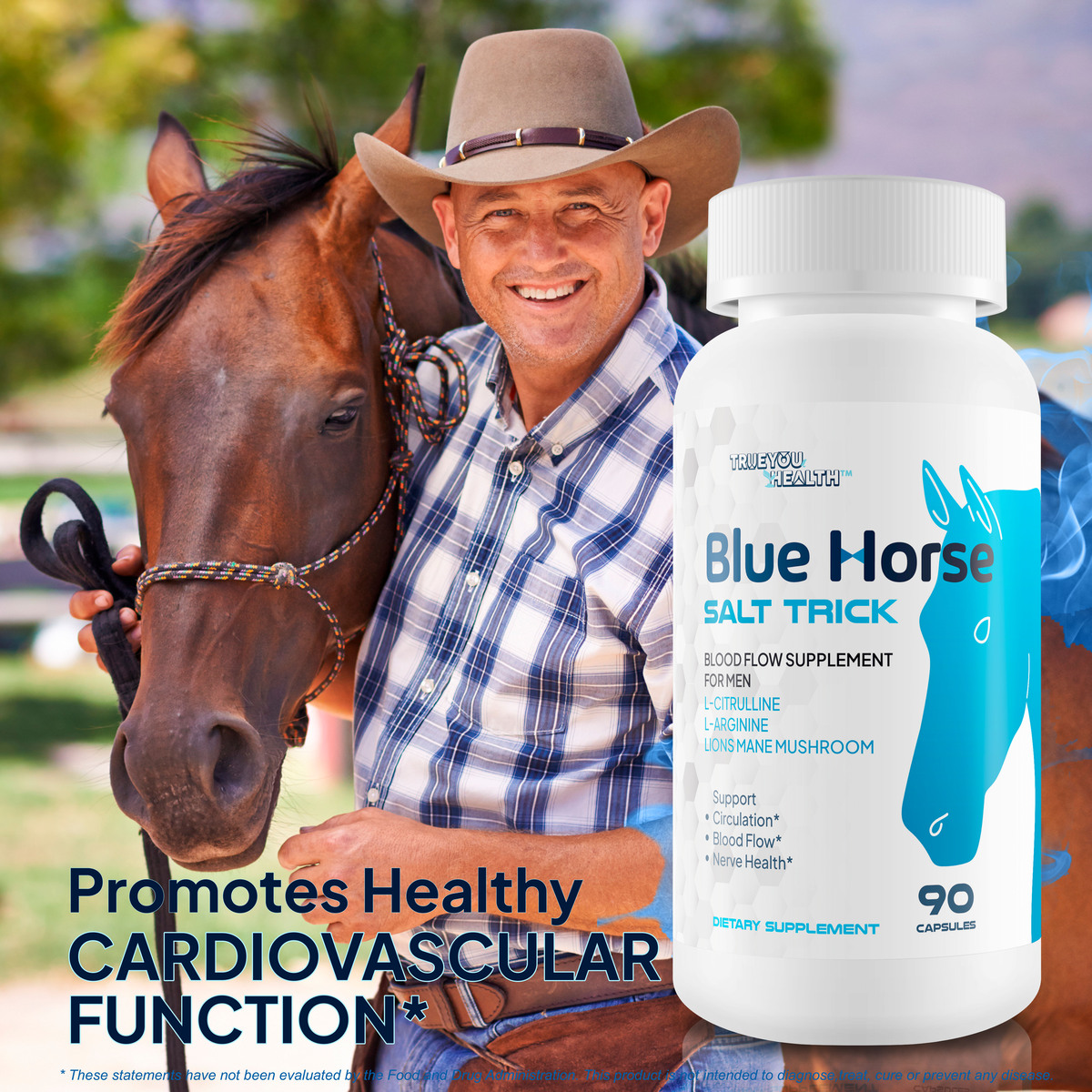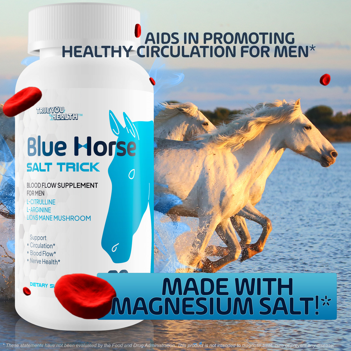 Men's Blood Flow Supplements - Blue Horse Salt Trick is thoughtfully formulated for men who want targeted support for healthy blood flow and circulation. Whether you’re looking for poor circulation supplements, a reliable pill for blood circulation support, or just want better blood flow care, this formula delivers. With a blend designed to act as a daily blood circulation supplement and effective mens blood flow supplement, it supports wellness from head to toe.