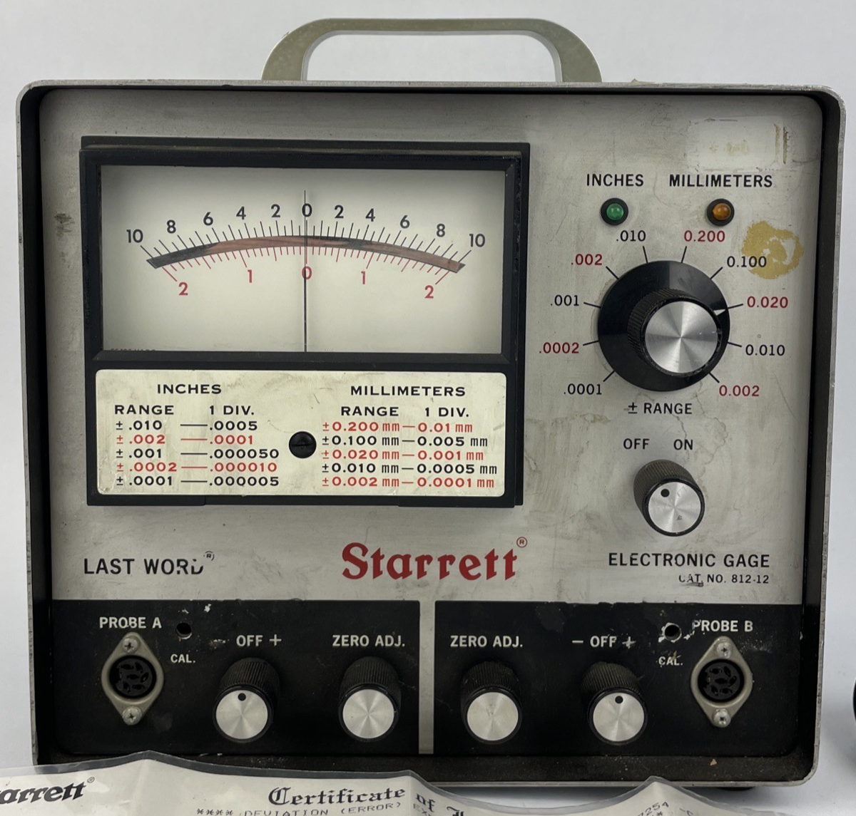 OEM Starrett Last Word No. 812-12 Electronic Gage with Power Cord and Certificate of Inspection.