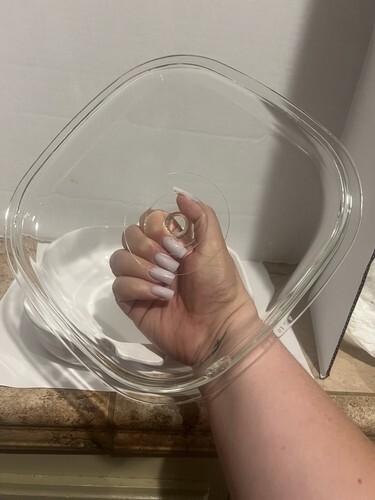 No cracks or chips in dish but the glass top has a chip! Please inspect photos carefully for details, condition and any imperfections before purchasing. Thanks for your interest! Fast Daily Shipping!