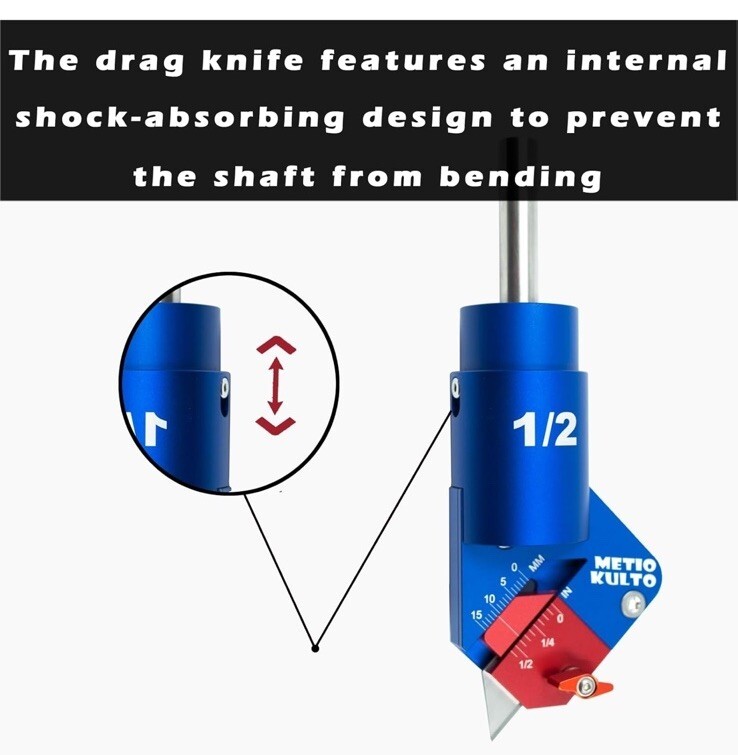 *Precision and Stability:Featuring an internal shock-absorbing mechanism, the drag knife prevents shaft bending during rapid CNC spindle descents or on uneven surfaces, ensuring accurate cuts every time