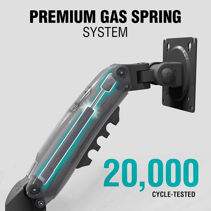 CUSTOMIZED COMBINATION TO ENSURE ERGONOMY AT WORK! Adjust both displays individually. The articulating and stable arms allow easy movement in any direction, according to your needs. You can tilt the monitor -30/+85, combined with 360 landscape or portrait monitor rotation. The ultimate high level quality built-in gas spring provides easy height adjustment up to 16.14? (410mm), extends up to 20.87? (530mm) and retracts the arms in the best way to personalize your workstation.