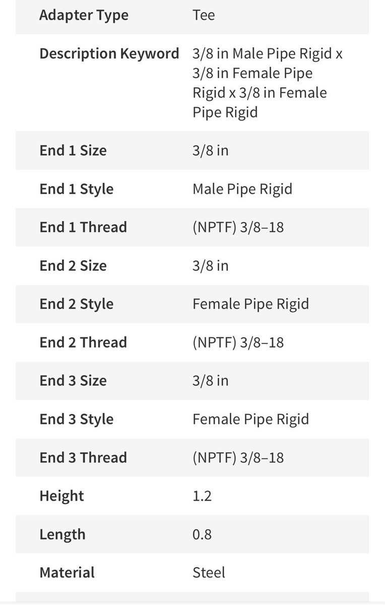 3/8? male NPT X 3/8? female NPT X 3/8? female NPT, street tee.