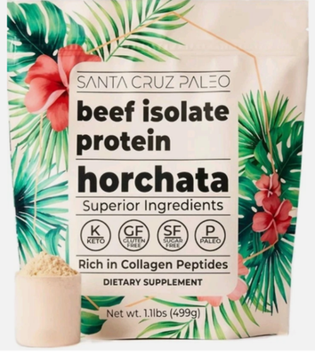 2x PACK Santa Cruz Paleo Beef Isolate Protein Powder, Horchata, Rich in Collagen Peptides, Gluten Free, Keto, Sugar Free, Paleo, 20g Grass Fed Protein Per Serving, Low Calorie Clean Protein Powder, 1.11 Lbs Brand Santa Cruz Paleo Flavor Horchata Item Weight 16 Ounces Material Type Free No Artificial Flavors, No Artificial Sweeteners, Sugar Free Diet Type Paleo About this item nan GRASS FED BEEF ISOLATE PROTEIN: For many people plant proteins and whey proteins can disturb their gut. Our nourishing grass-fed grass finished beef isolate protein is extremely gut friendly and supports the muscles and skin as it is naturally rich in collagen peptides. 20G OF PROTEIN PER SERVINGS: Each serving has 20g of protein per 92 calorie scoop. Beef isolate has a more robust amino acid profile than collagen. A great addition to your daily diet. Available in 3 delicious flavors: horchata, chocolate, and au naturale. CLEAN INGREDIENTS: Santa Cruz Paleo high protein powder is made with Grass-fed Grass-finished Beef Isolate Protein, Cacao Powder, Natural Flavor, Ginger, Cloves, Cinnamon, Cardamom, Nutmeg, Black Pepper, Himalayan Sea Salt, Stevia Leaf Extract. HEALTHY FORMULA: Our beef protein powder has no fillers, binders, artificial sweeteners, dairy, gluten, seed oils, or anti-caking agents. Santa Cruz low calorie protein powder isolate is also keto, sugar free, and paleo. A great alternative to whey protein, collagen peptides powder, or plant based protein powder. EASY TO BLEND: Our favorite way to use our grass fed protein powder is to blend it into a smoothie, protein shake or coffee. We like using coconut milk, almond milk, full fat dairy, or coconut water.