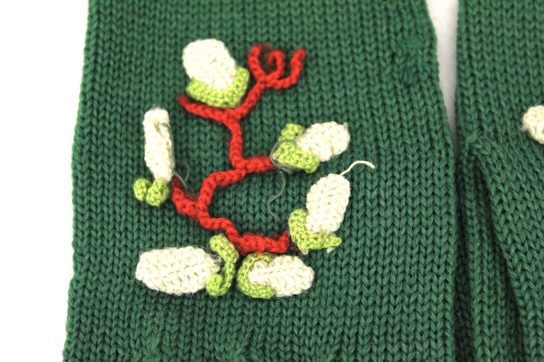 VINTAGE HAND KNITTED Womens GLOVES WITH Applique Green Red Sz 7 1940s Peg Hanger