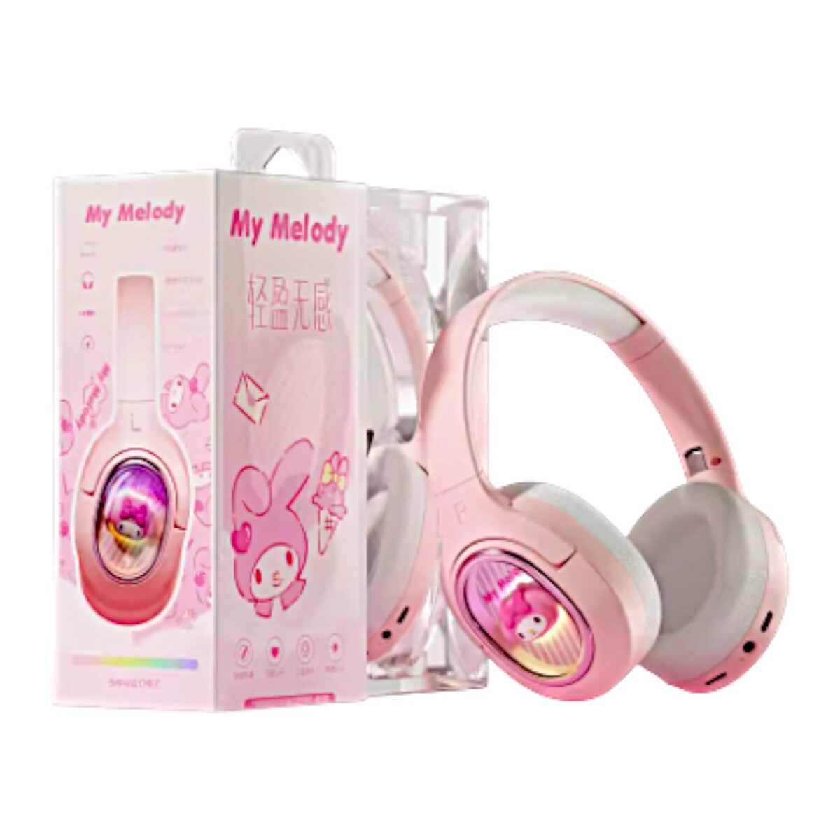 Melody Kuromi Wireless Bluetooth Headphones RGB Light 3.5mm Aux Foldable Headset