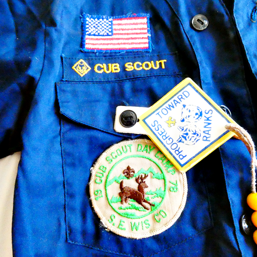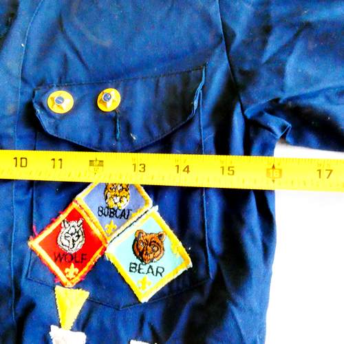 Vintage Blue Cub Scout Boy Shirt V-neck Wisconsin Patches Pins 70's Size Small